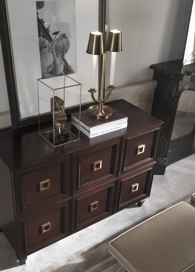 Վինտաժային երեսպատումով և արույրե դետալներով Perry կոմոդը կհաղորդի իր հմայքը Ձեր ինտերիերին: Կառուցվածքը՝ հաճարենու փայտ։