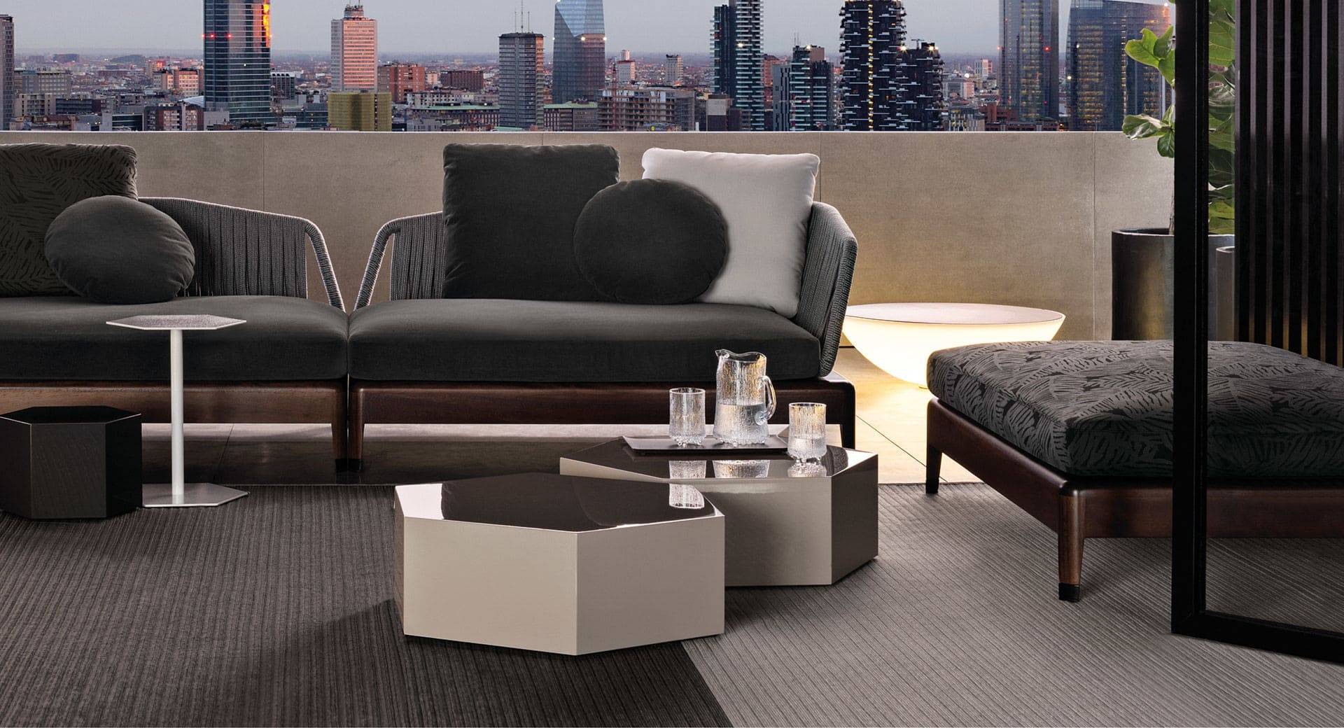 Aeron <<Outdoor>> սեղանը ստեղծված է վեցանկյուն պրիզմայի տեսքով, որտեղ յուրաքանչյուր նիստ նրբորեն բեկում է լույսը։ Փայլուն ծածկույթը նրբագեղություն է հաղորդում ցանկացած ինտերիերի, մինչդեռ նրբագեղ երանգներն անխափան կերպով միաձուլվում են գունային սխեմաների լայն շրջանակի մեջ: Հնարավորեն տարբեր լուծումներ։