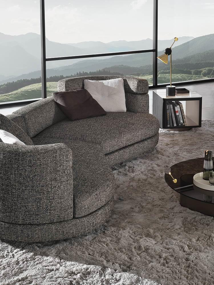 Ոգեշնչված ռացիոնալիստական և ժամանակակից գաղափարներով՝ Alexander մոդուլային բազմոցը տարբեր ձևերով համակարգ է, որը կարելի է համատեղել միմյանց հետ: Քառակուսի և կոր տարրերը կարող են օգտագործվել միասին նույն կոմպոզիցիայի մեջ՝ անհատական դիզայն ստեղծելու համար: Տարբեր մոդուլային տարրերը ապահովում են ընտրության լայն շրջանակ՝ L-աձև կոնֆիգուրացիաներից, որոնք բնութագրվում են կատարյալ երկրաչափությամբ մինչև գծային մեկնաբանություններ, որոնք կարող են վերածվել ոլորուն պրոֆիլների՝ շնորհիվ Alexander-ի օրիգինալ <<Drop>> կոր տարրերի, ինչպիսիք են շեզլոնգը կամ կլորացված անկյունային մոդուլները: Մոդուլները կարող են ունենալ բարձր կամ ցածր մեջք, կամ երկուսի համադրություն, ինչը համակարգը դարձնում է բազմակողմանի: Հիմքը ալյումինե ձողերից է, կառուցվածքը՝ փայտից, միջուկը՝ պոլիուրեթանային փրփուրից։ Հասանելի է տարբեր կոնֆիգուրացիաներով, չափսերով, ավարտվածքներով և գույներով: