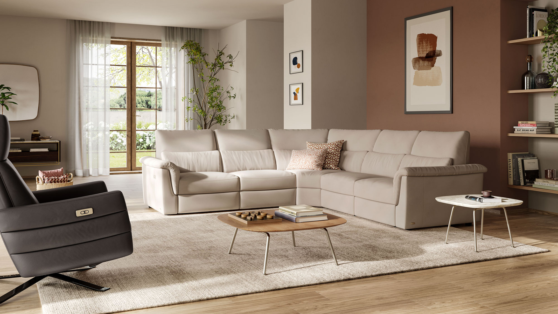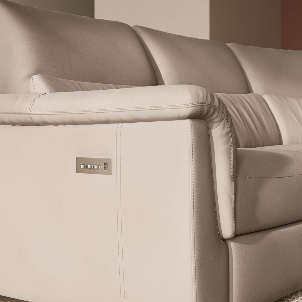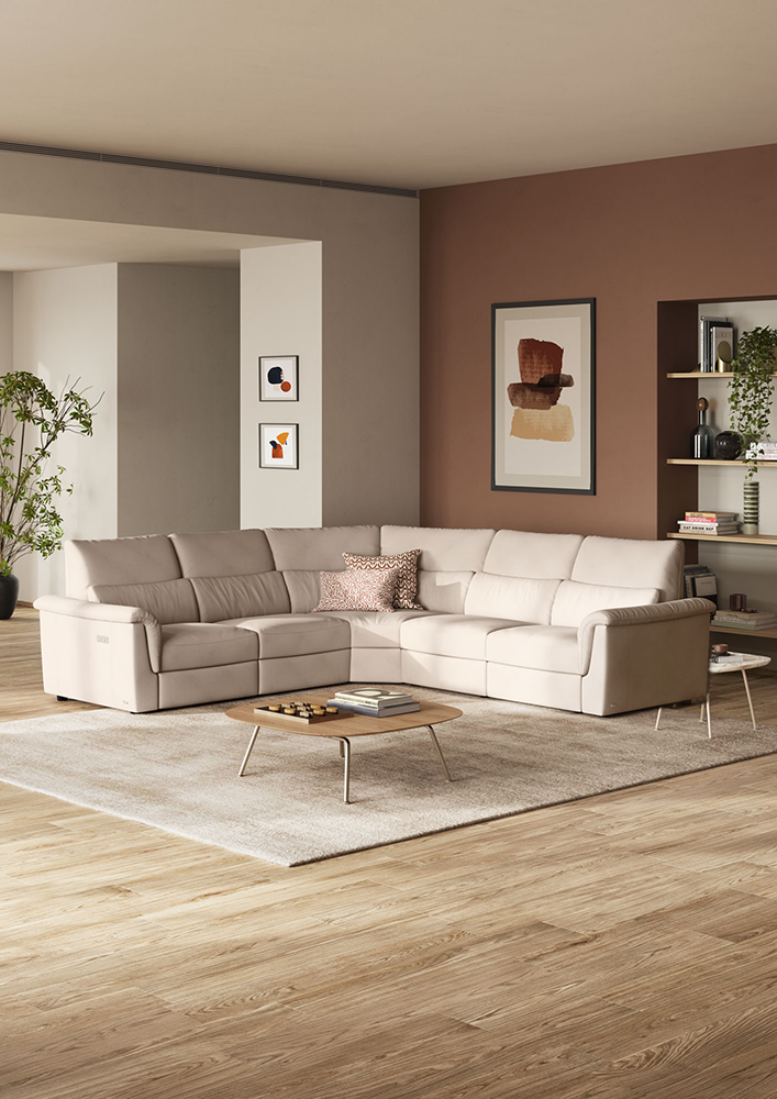 Amorevole-ն աչքի է ընկնում իր առօրյա դիզայնով և հարմարավետ ձևերով: Այն նաև շատ լայն է ՝ բարձր հենակով և լայն արմնկակալներով, որոնք ունեն քառակուսի ձևավորում և կլորացված անկյուններ։ Հարմարավետությունը զգացվում է բազմոցի յուրաքանչյուր քառակուսի սանտիմետրում։