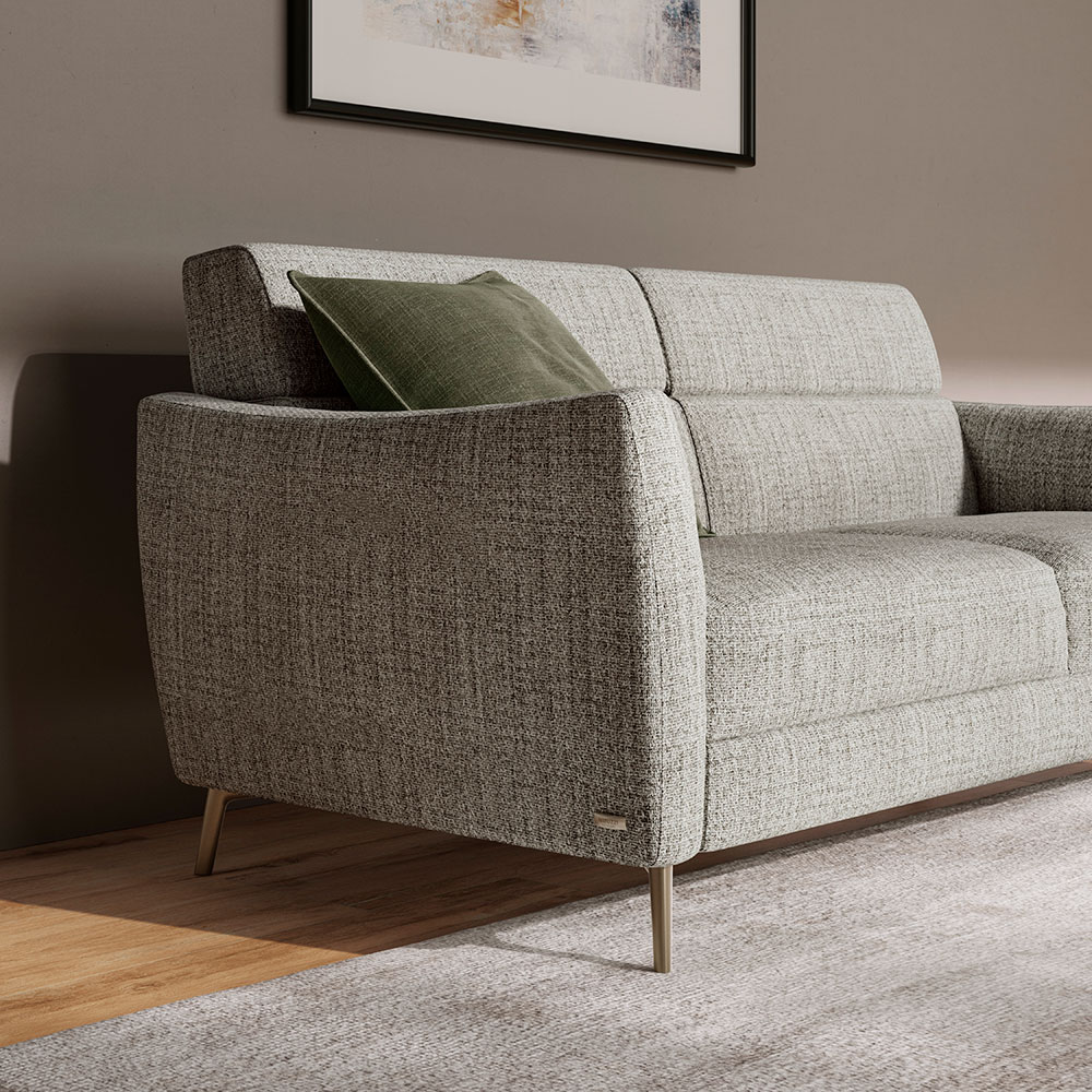 Տպավորիչ բազմոց, որն անմիջապես գրավում է աչքը իր ուղղագիծ, բայց որոշիչ կառուցվածքով և քառակուսի ձևերով: Կատարյալ է ցանկացած տարածքի և կահույքի ոճի համար: Բարակ մետաղական ոտքը բազմոցին տալիս է թեթևություն և անհատականություն: