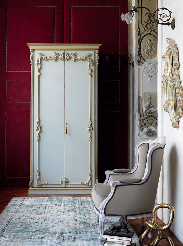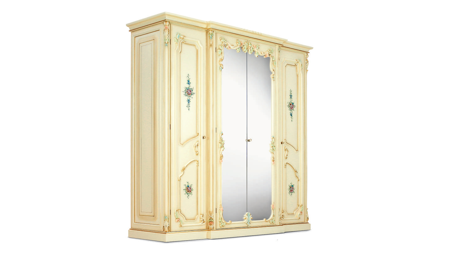 4 դռնանի զգեստապահարան։ Երկու կենտրոնական դռները հայելային են։ Ներքին լրացում հաճախորդի ցանկությամբ ։ Դեկոր - պոլիուրեթանային փրփուր: Հնարավոր են տարբեր լուծումներ։