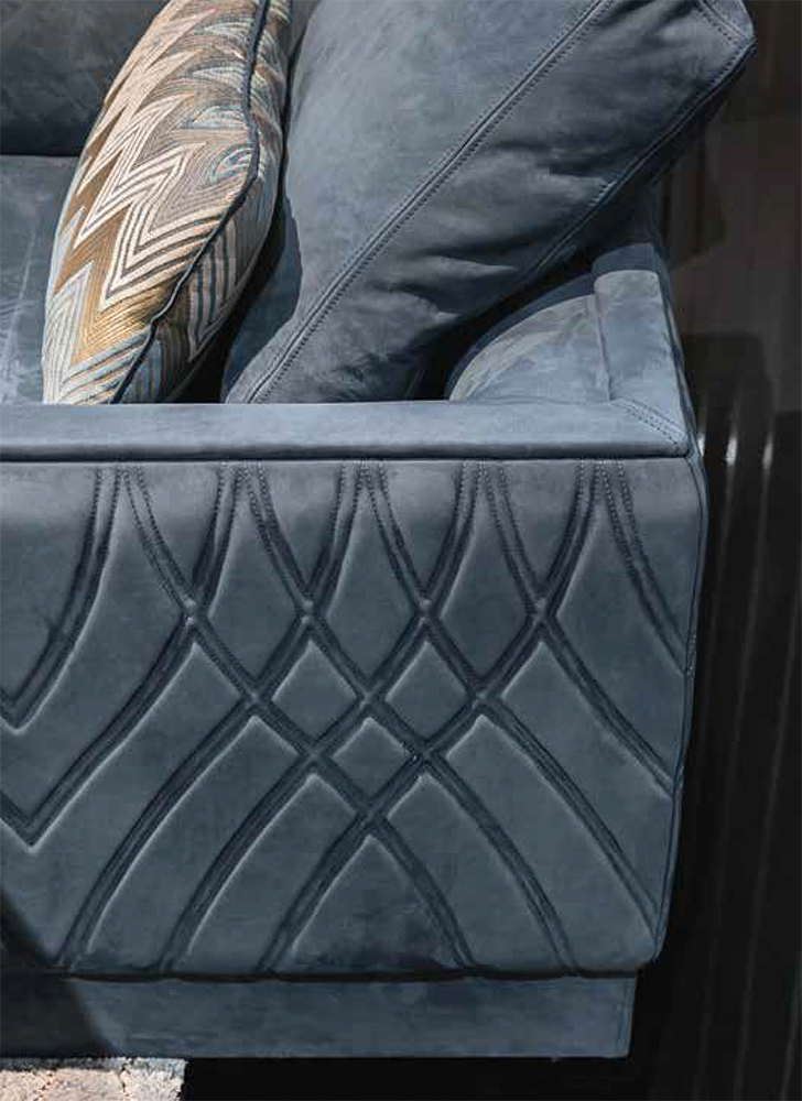 Կապույտ Miami –ի կապույտ թավիշից շքեղ ձևերը դետալ են, որը կօգնի ձեզ դասական հյուրասենյակ կահավորել ժամանակակից հպումով: Իրականում, դիզայնը և՛ ավանդական է, և՛ նորարարական, որպեսզի համապատասխանի երկու ոճին:
