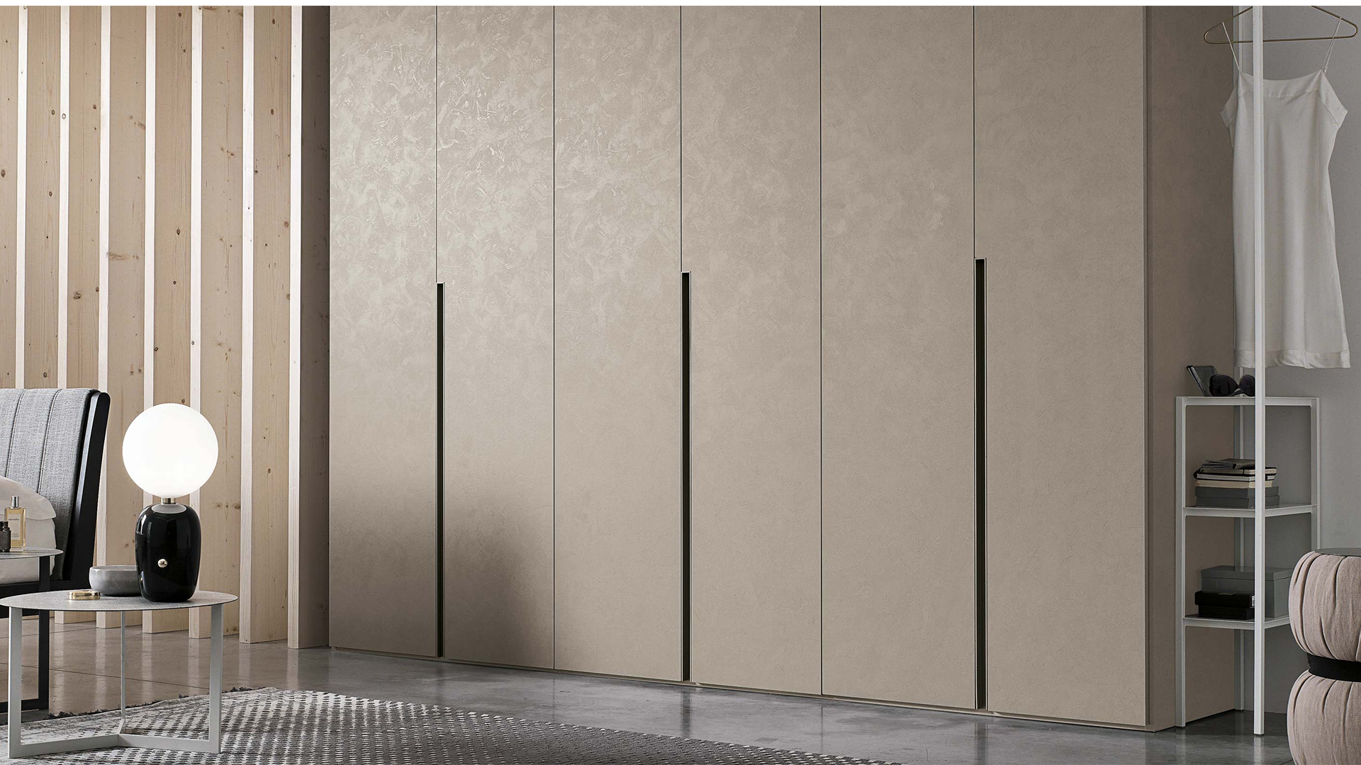 Պահարանի պարզ դիզայնը ներկայացված է ֆունկցիոնալ դետալով․ ներկառուցված բռնակը ուղղահայաց բարձրանում է մինչև միջին հատված՝ դառնալով բացման համակարգի գլխավոր տարր: