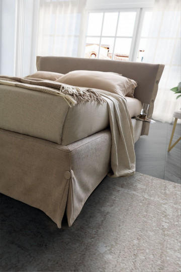 Հեգնանքն ու էլեգանտությունը Giselle-ն դարձնում են ամուր անհատականությամբ, ոճի պատկերակ ունեցող մահճակալ-կոնտեյներ: Ոչ միայն գործվածքի ծածկույթ իր հիմքի համար, այլ նրբագեղ կիսաշրջազգեստ՝ կողային բացվածքներով; ոչ թե սովորական փափուկ գլխակալ, այլ աստառով հսկայական բարձ, որի կողային կոճակները չեն կարող չնմանվել էլեգանտ վերարկուներին բնորոշ նրբագեղ ամրացումներին։