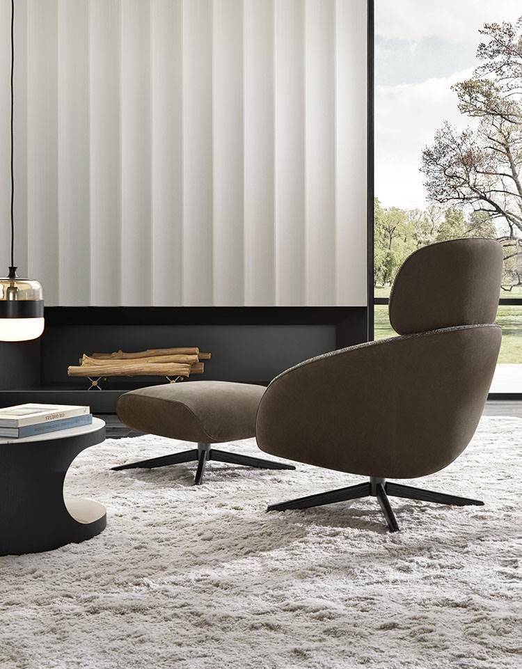 Բազկաթոռ Russell օսմանյանի հետ մոդերն ոճով, 360 աստիճան պտտվող: Պաստառագործությունը կարելի է ընտրել Minotti հավաքածուից։ Աթոռի հիմքը կարելի է տեղադրել մետաղյա հարթակի վրա՝ բրոնզագույն մետաղից՝ մոկա կաղնու ոտքերով, ինչը թույլ է տալիս աթոռին պտտվել 360 աստիճանով։
