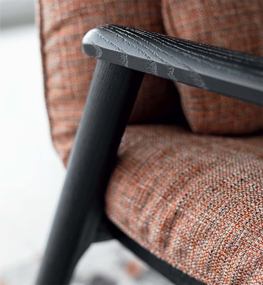Լաունջ-աթոռ՝ հարուստ լիցքով և ոտքերի և արմնկակալների անսովոր ձվաձեւ հատվածով: Բնական մոխրագույն փայտի շրջանակն ու փարթամ փափուկ նստատեղը Baltimora-ին հարմարավետություն են հաղորդում: Գոտկատեղի համար նախատեսված հանովի ծածկոցով փոքրիկ բարձը երաշխավորում է ամենօրյա առավելագույն հարմարավետություն: