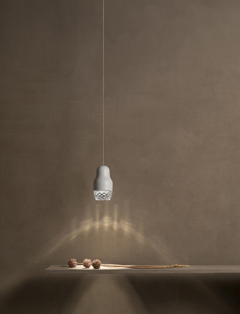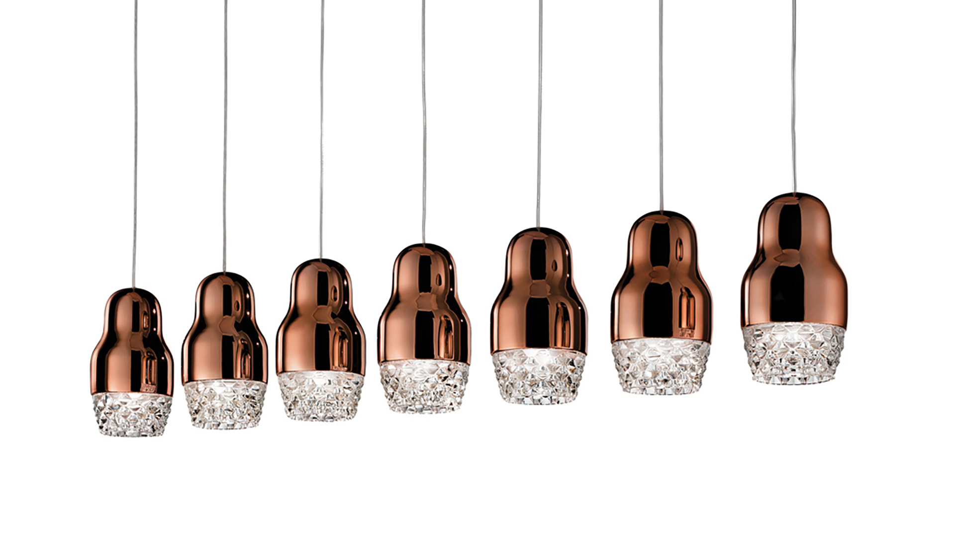 Извилистая и изящная, как матрешка/русская кукла, Fedora, одиночная или составная, выражает свою индивидуальность в великолепных сценографических конфигурациях. Современность и традиции сочетаются в его светящейся гармонии.