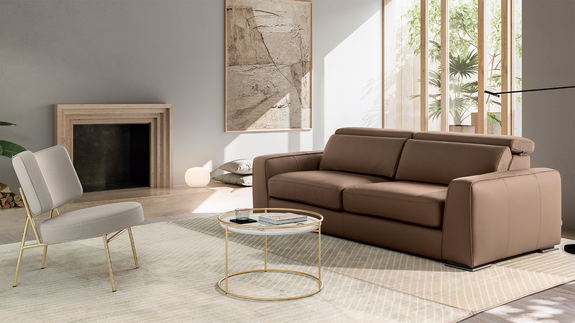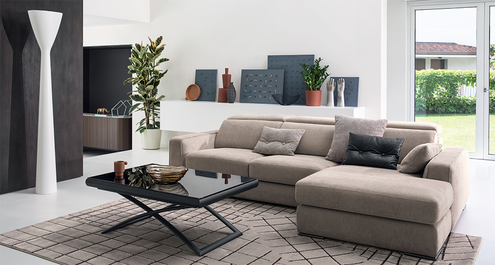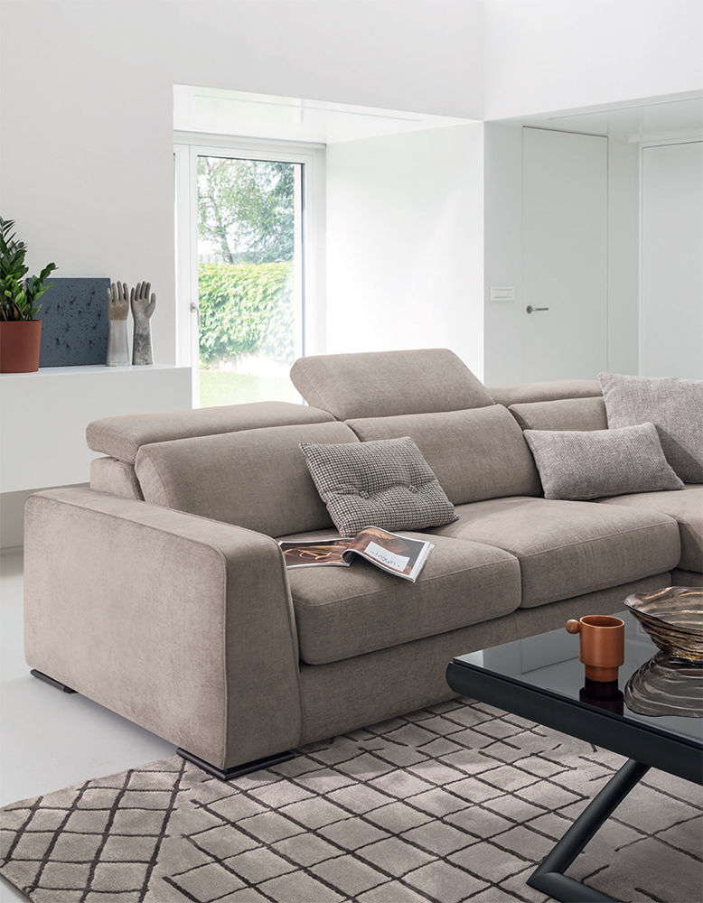Простые и обволакивающие линии для Cast, дивана с выдвижным сиденьем, защелкивающимся механизмом положения и боковым шезлонгом.
