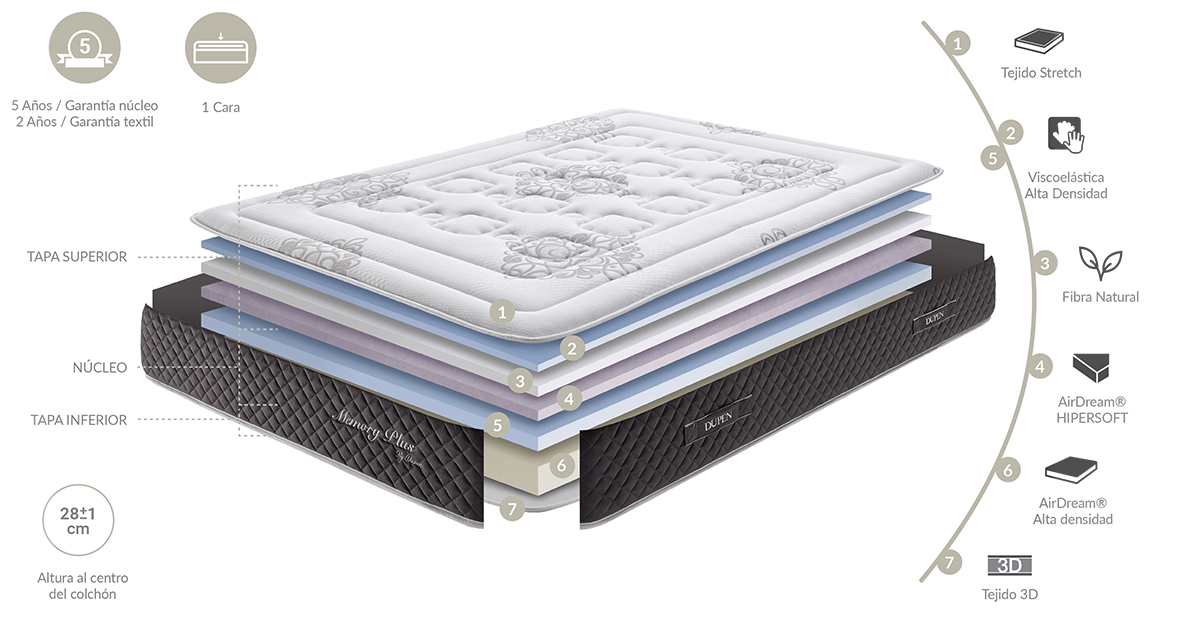 Матрас Dupen Memory Plus на основе высококачественной Memory Foam, с прострочкой из Memory, сделан так, что тело контактирует с этим материалом, доставляя максимальное удовольствие и невероятный комфорт. Сердечник матраса выполнен из поролона высокой плотности для лучшей поддержки и большей крепости. Memory Plus – великолепный матрас, произведённый из высококачественных материалов. Инновационная эргономика: эксклюзивная прострочка, бока прошиты двойной белой 3D нитью, самая свежая разработка наших дизайнеров.