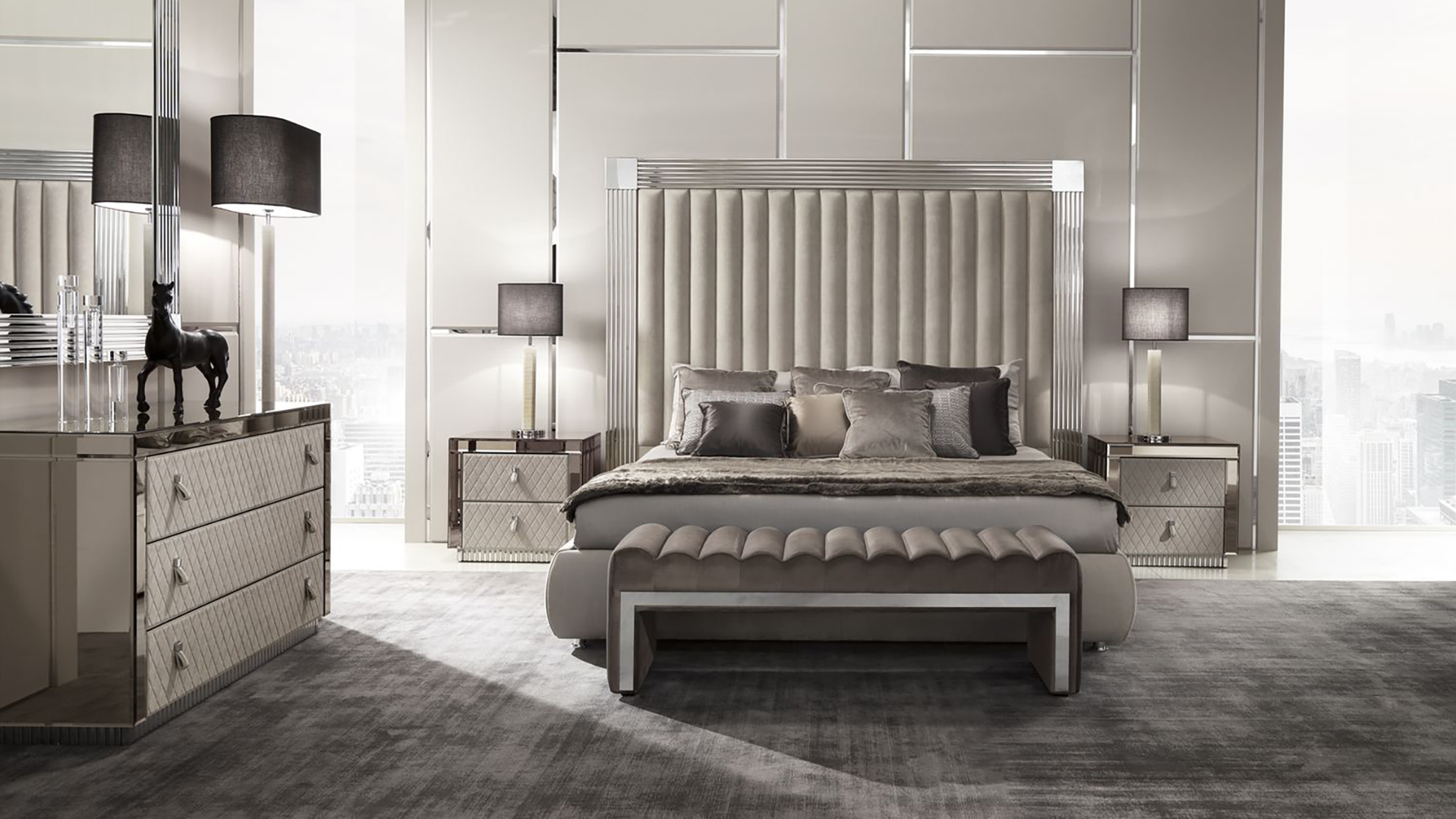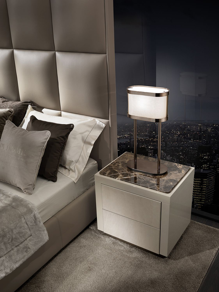 Тумбочка Envy сверкает зеркальными поверхностями. У нее узнаваемый дизайн и хорошие опции: небольшая столешница и два выдвижных ящика. Ножек у тумбочки нет ― она стоит на плоском ровном основании прямоугольной формы.
