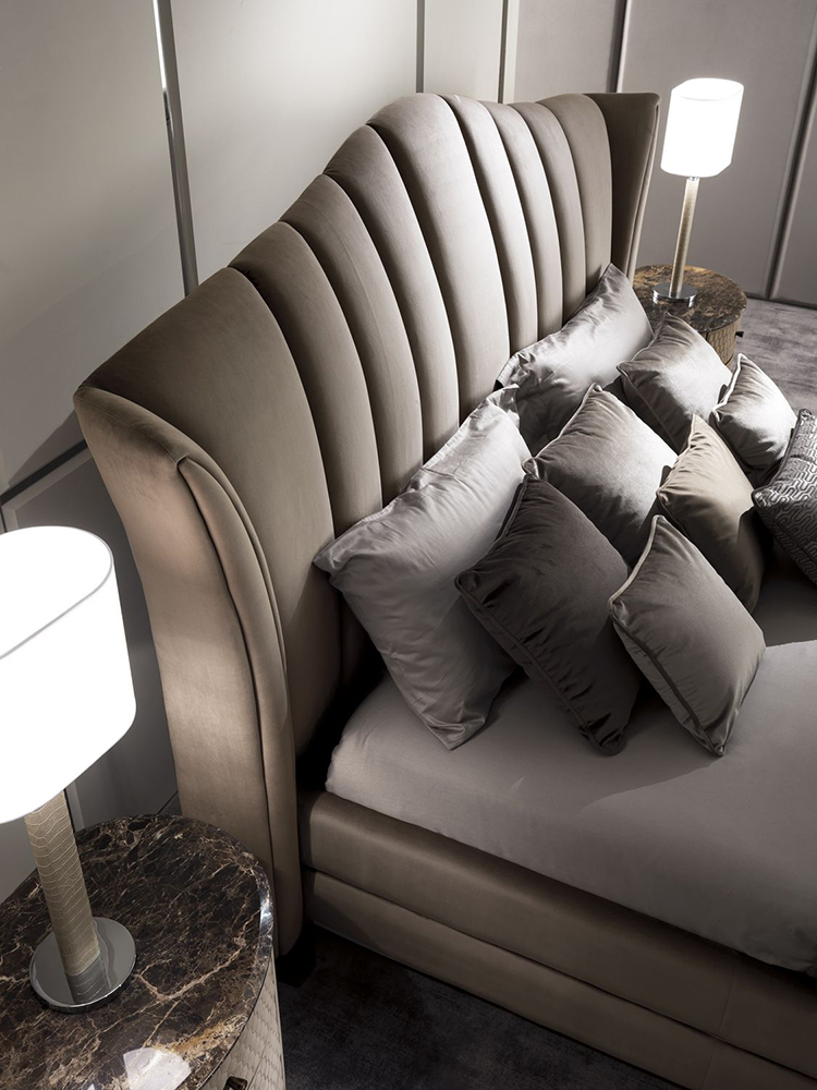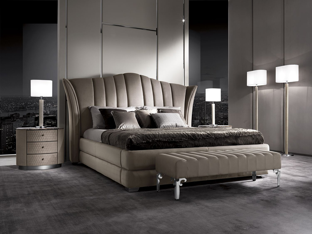 Кровать с кожной отделкой Vanity изготовлена с учетом модных тенденций. Мягкое изголовье имитирует спинку дивана, что привносит в дизайн мебели оригинальность. Кровать в стиле ар-деко станет универсальным выбором для оформления интерьера в спальной комнате. Мягкая обивка покрывает корпус и является несъемной.