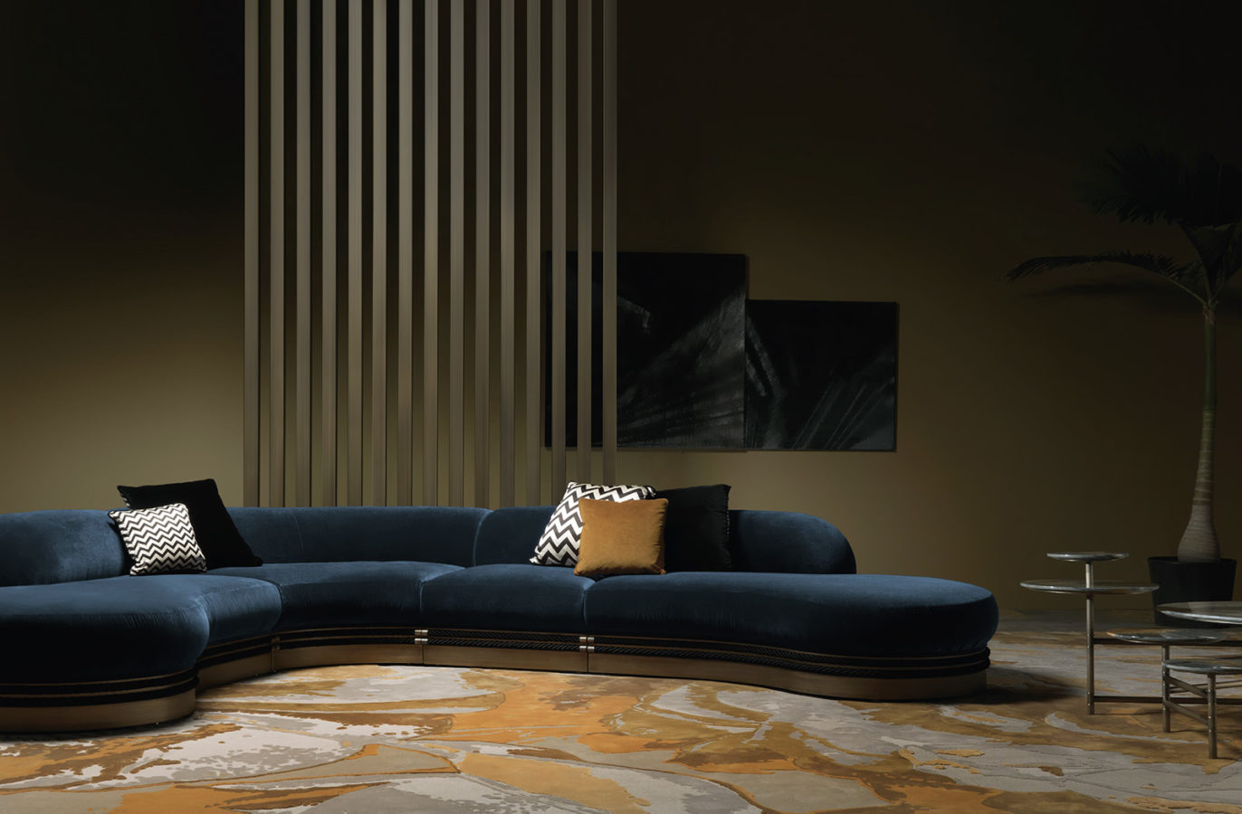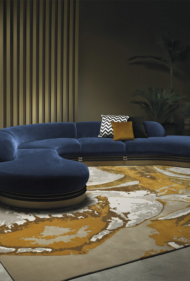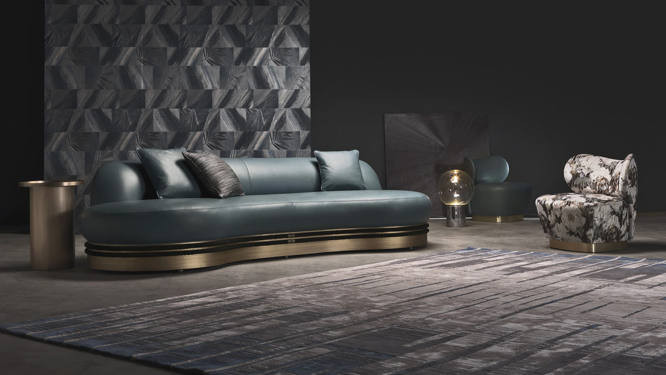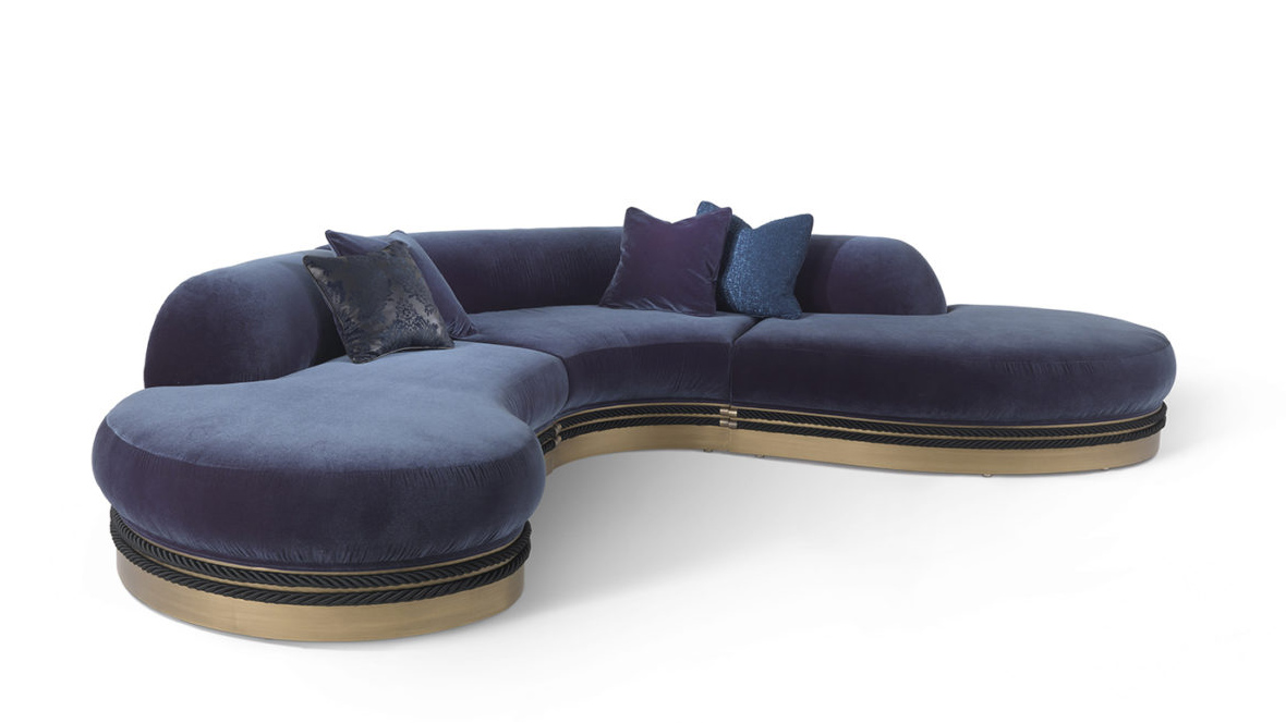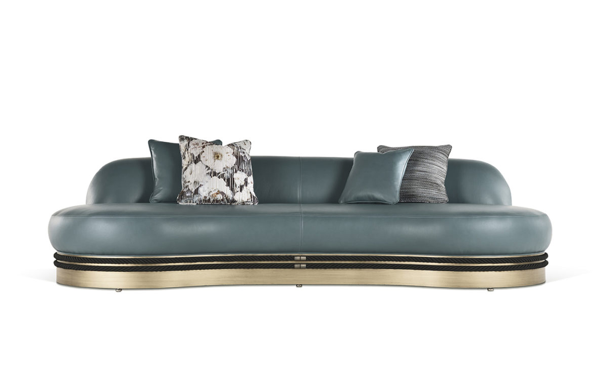 Трехместный диван со структурой из бука и пены. Обивка из кожи. По основанию пущены декоративные веревки с деталями из латуни. Деревянная рама с бронзовой отделкой.