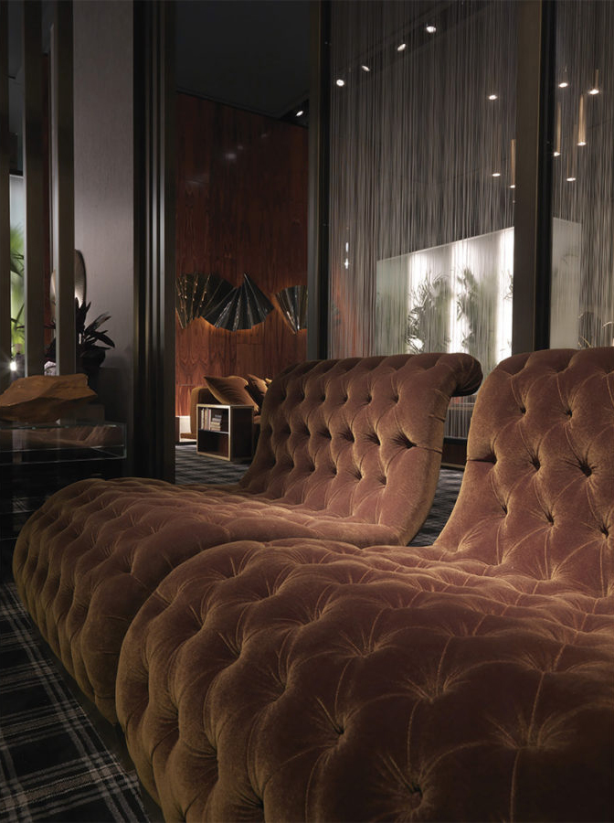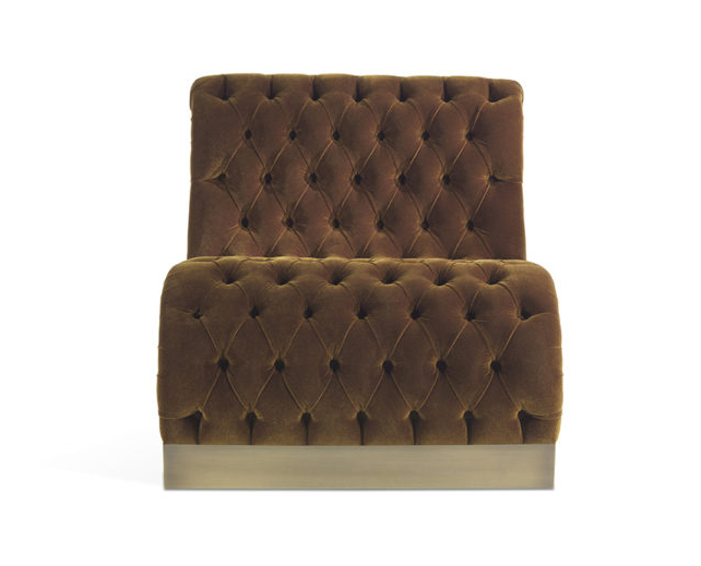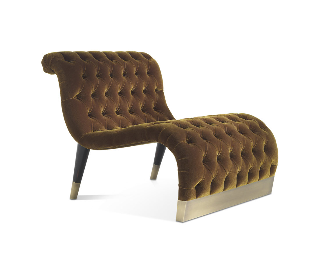 Модель Bonnie от Gianfranco Ferrè Home замерла на полпути между креслом и шезлонгами. Ножки, подпирающие изогнутое сидение, придают креслу винтажный дух. Передняя часть оформлена стежкой капитоне. Изысканное и экстравагантное кресло Bonnie отличается также наклонными задними ножками с наконечниками из бронзовой латуни, придающими винтажный оттенок всему изделию.