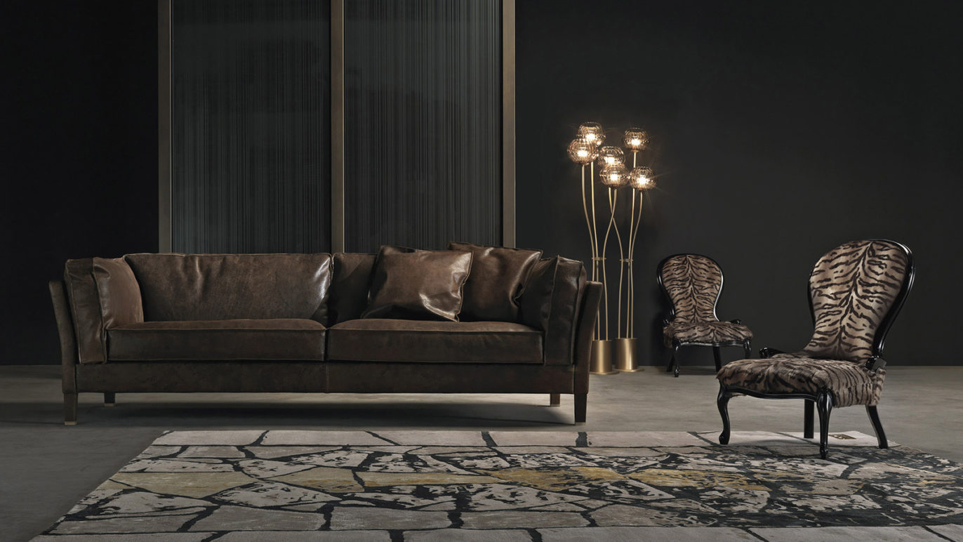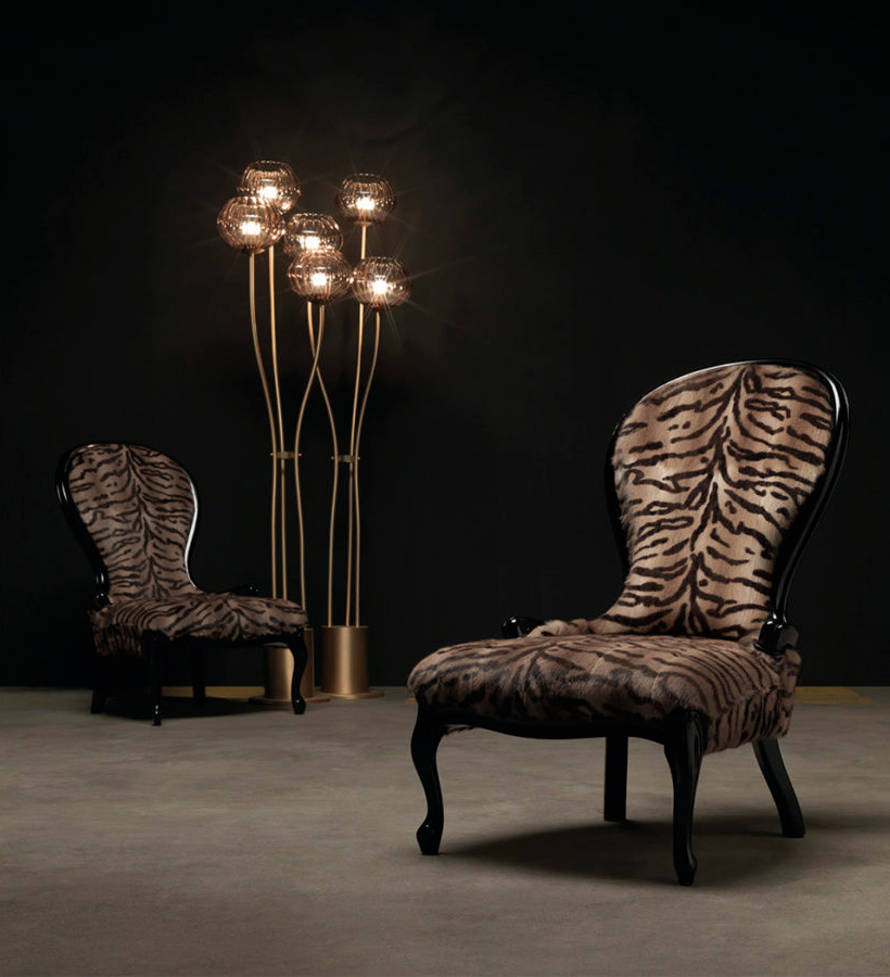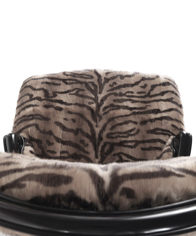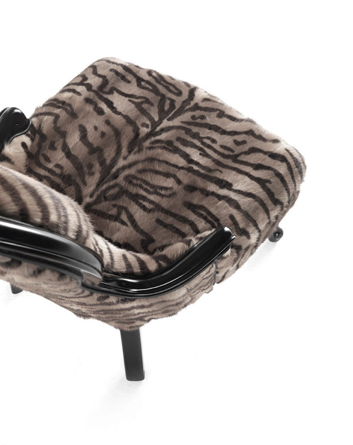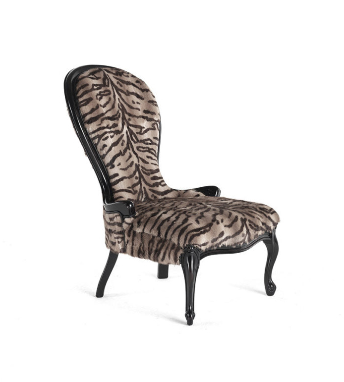Кресло в стиле времен Людовика XV со структурой из бука и пены. Обивка из меха ласки, отделанная черным лаком.