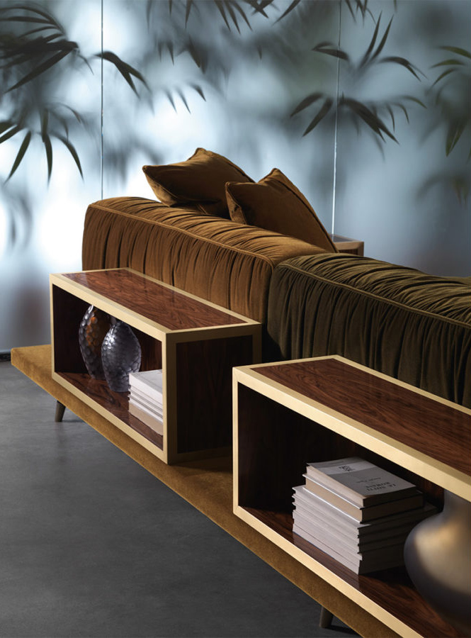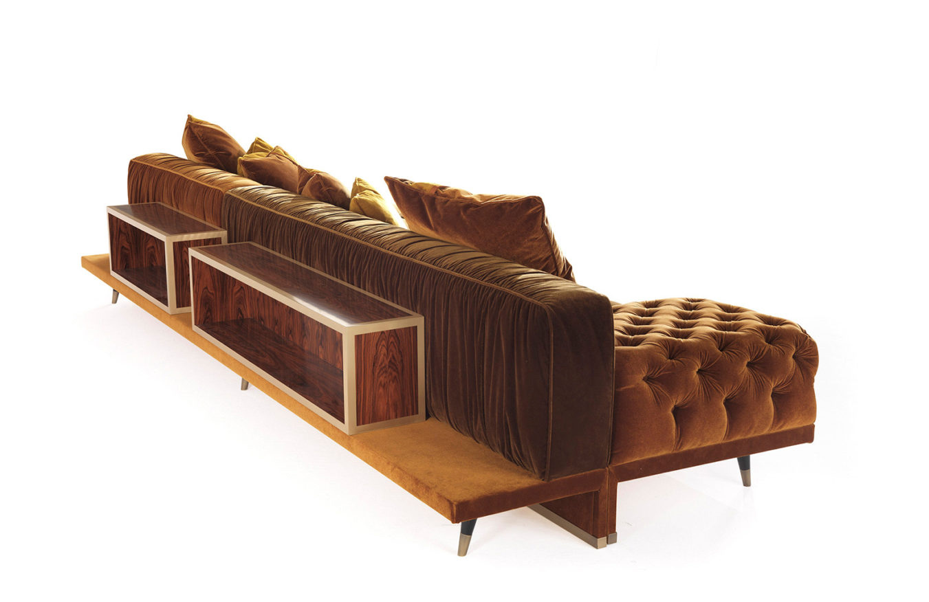 Модульный диван Highlander с современным дизайном идеально отражает разностильность бренда, а также его высококвалифицированное мастерство. Со стороны спинки дивана есть возможность вставки блоков из палисандра и латуни, которые могут служить полками и зонами хранения, делая предмет многофункциональным. Обивка доступна в различных тканях или коже из коллекции, а изысканные детали из бронзированной латуни подчеркивают элегантный и утонченный шарм дивана.