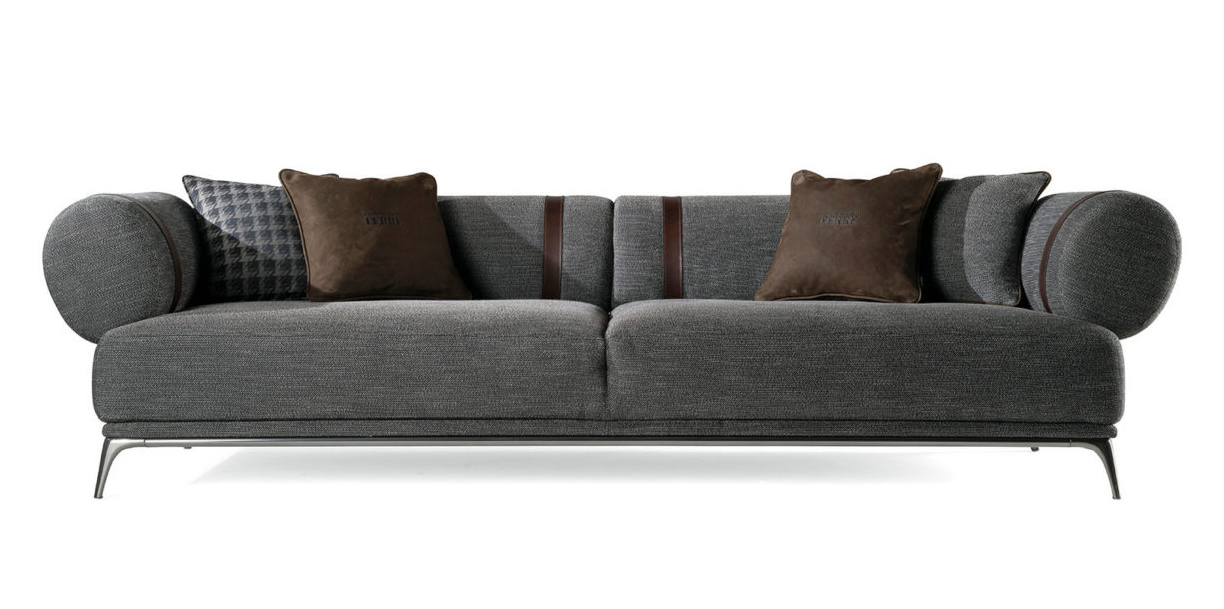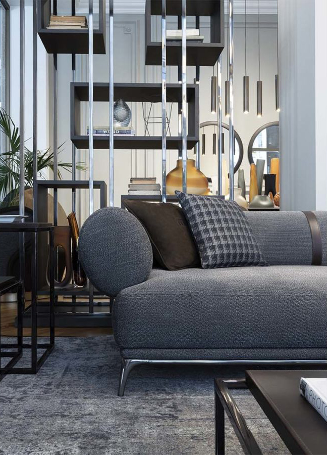 Со своим винтажным шармом, узнаваемым стилем и элегантным силуэтом диван Phoenix напоминает об иконах дизайна, предлагая оригинальную интерпретацию классического подлокотника. Подлокотники и спинка с овальным сечением, слегка наклоненным наружу, обтянуты темно-серой тканью, а металлическая основа отличается отделкой из черного хрома, что является символикой изысканности.