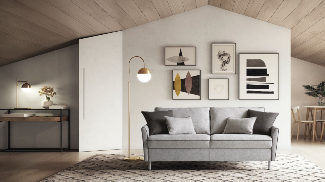 Эта модель имеет высокие ножки из окрашенного металла и может превратиться в диван-кровать и шезлонг, чтобы обеспечить дополнительный комфорт и дополнительное пространство для ваших гостей во время их пребывания.