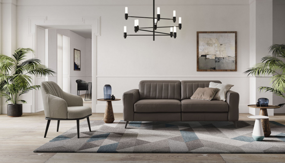 Подобно тому, как высокие ноги Egon поднимаются вверх и поддерживают богатую композицию объемов, так и откидывающиеся подголовники поддерживают верхнюю часть человеческого тела, обнимаемую хорошо продуманными спинками. Последние подчеркнуты вертикальной строчкой, оживляющей тканевую или кожаную обивку. Механизм расслабления подножки удваивает комфорт.