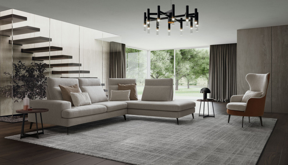 Гостиная прощается с монотонностью, приветствуя яркую оригинальность этого дивана. Emmet разрывает все связи с обычными диванами: благодаря механизму выдвижной спинки можно отрегулировать глубину сидений и отделить одну от остальной части дивана.
