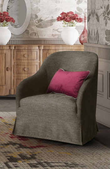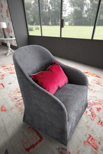 Благодаря тонким выточкам сторон обивки Leslie обладает уравновешенной элегантностью. Он напоминает утонченный халат, запечатанный плавным изгибом подлокотников, чье изящное прилегание к элементам сиденья и спинки подчеркивает уравновешенное соответствие форм.