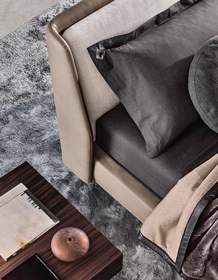 Утончённая и многофункциональная кровать Spencer от Minotti объединяет традиции итальянского производства и современный дизайн. Абсолютная плавность линий наполняет образ гармонией. Мягкая спинка огибает основание и создаёт чувство защищённости, а подушки, прилегающие к изголовью, обеспечивают удобное положение для чтения книг перед сном.