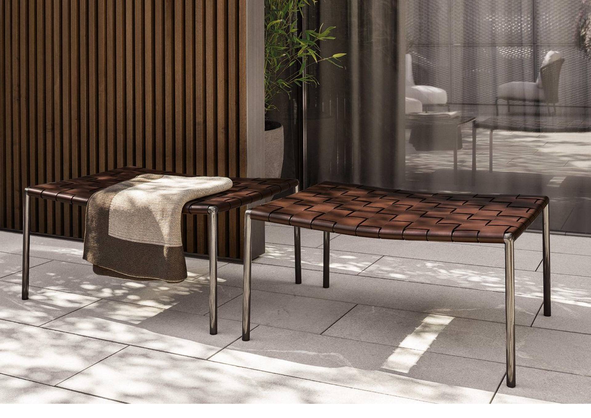 Металлический каркас Klasen \"Outdoor\" обработан специальной полиэфирной краской для наружных работ цвета Pewter. Сиденье изготовлено вручную из водоотталкивающей седельной кожи терракотового цвета.