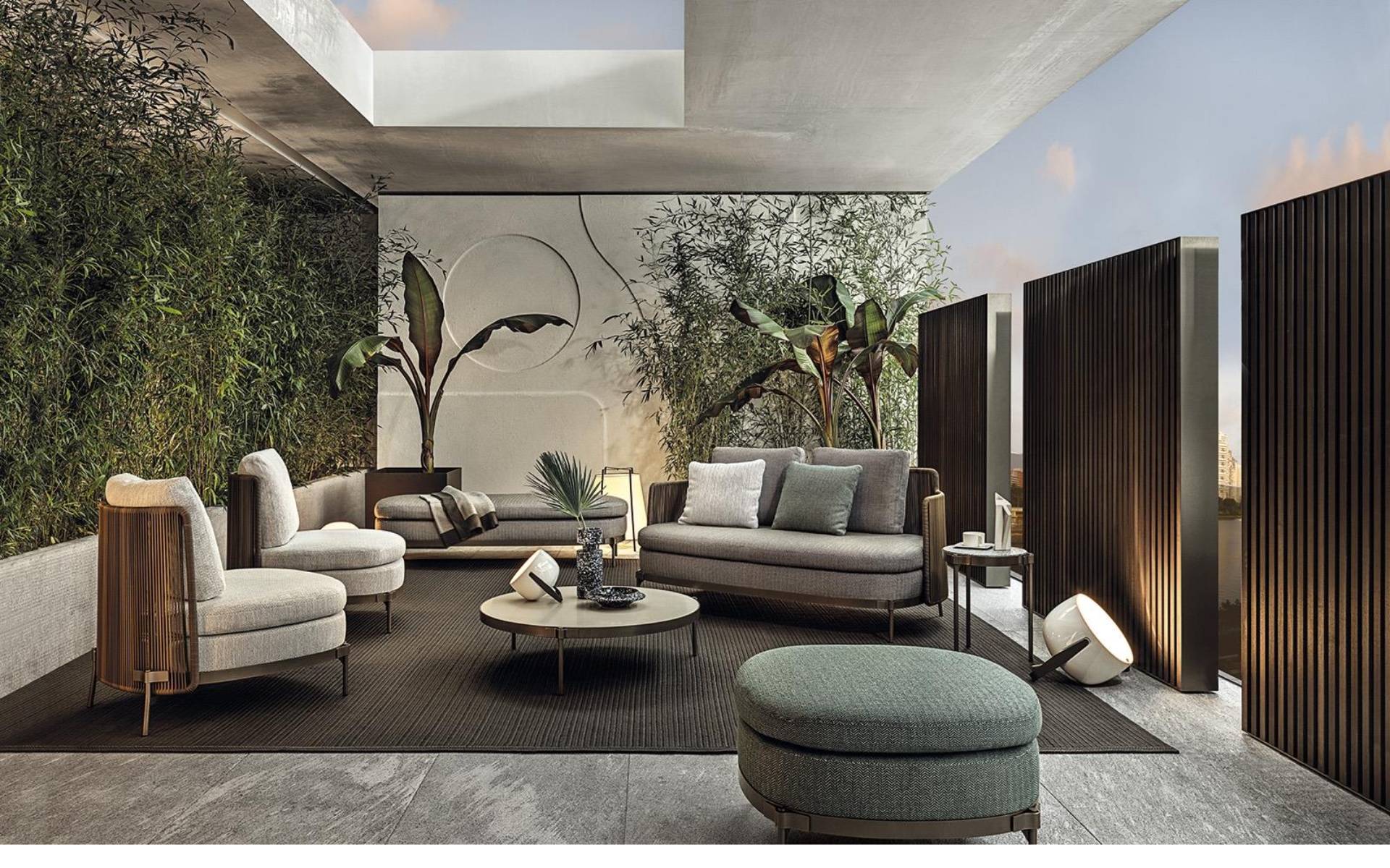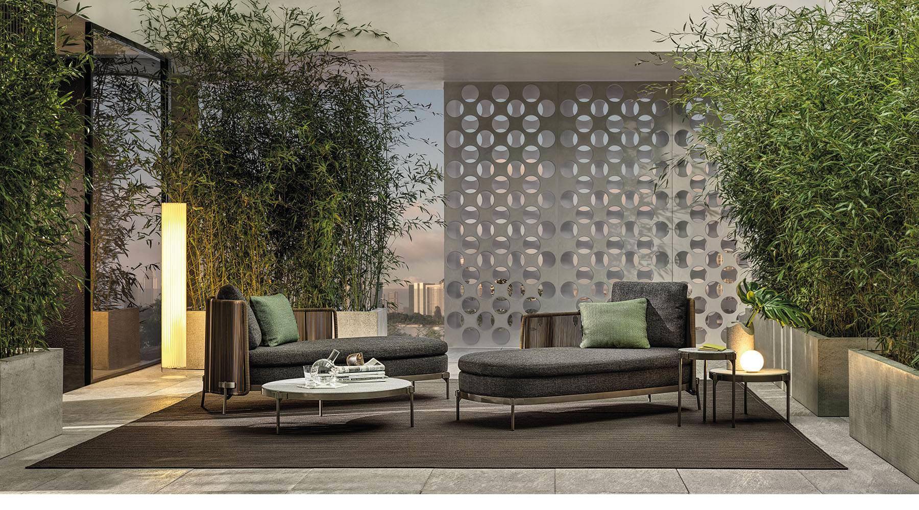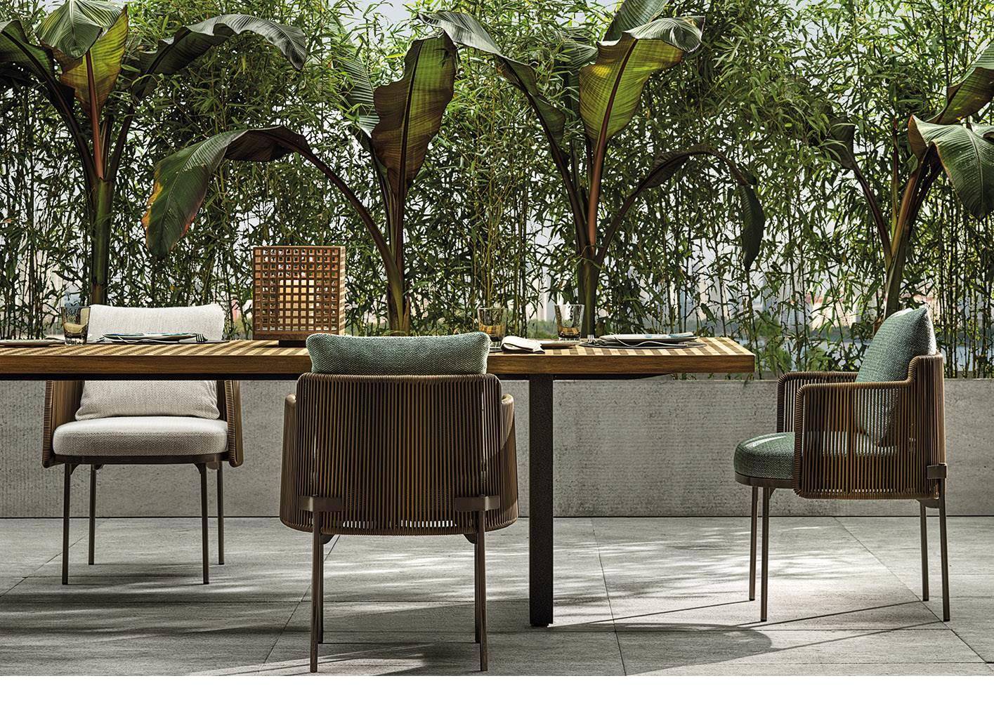 Сиденья становятся более глубокими, большими и более расслабляющими, а металлический каркас в новой отделке для улицы покрыт шнурами с эффектом плетения, доступными в двух цветах: Mud и Liquorice.