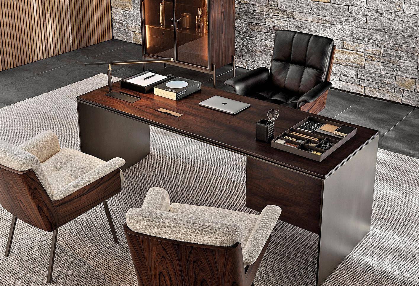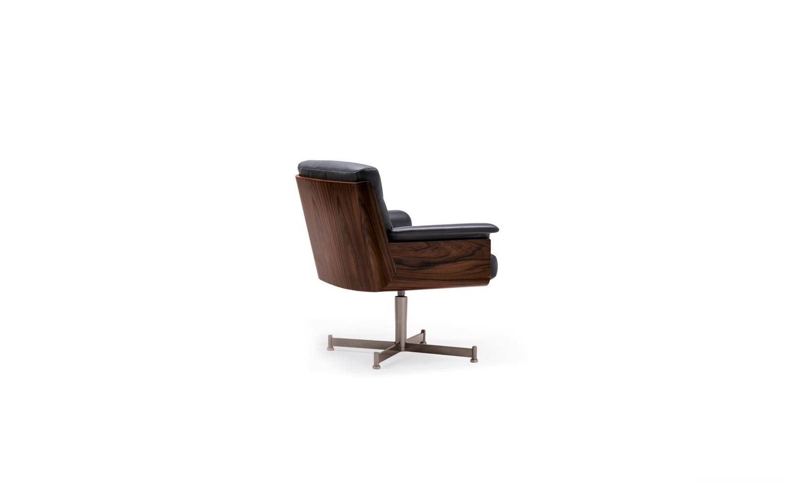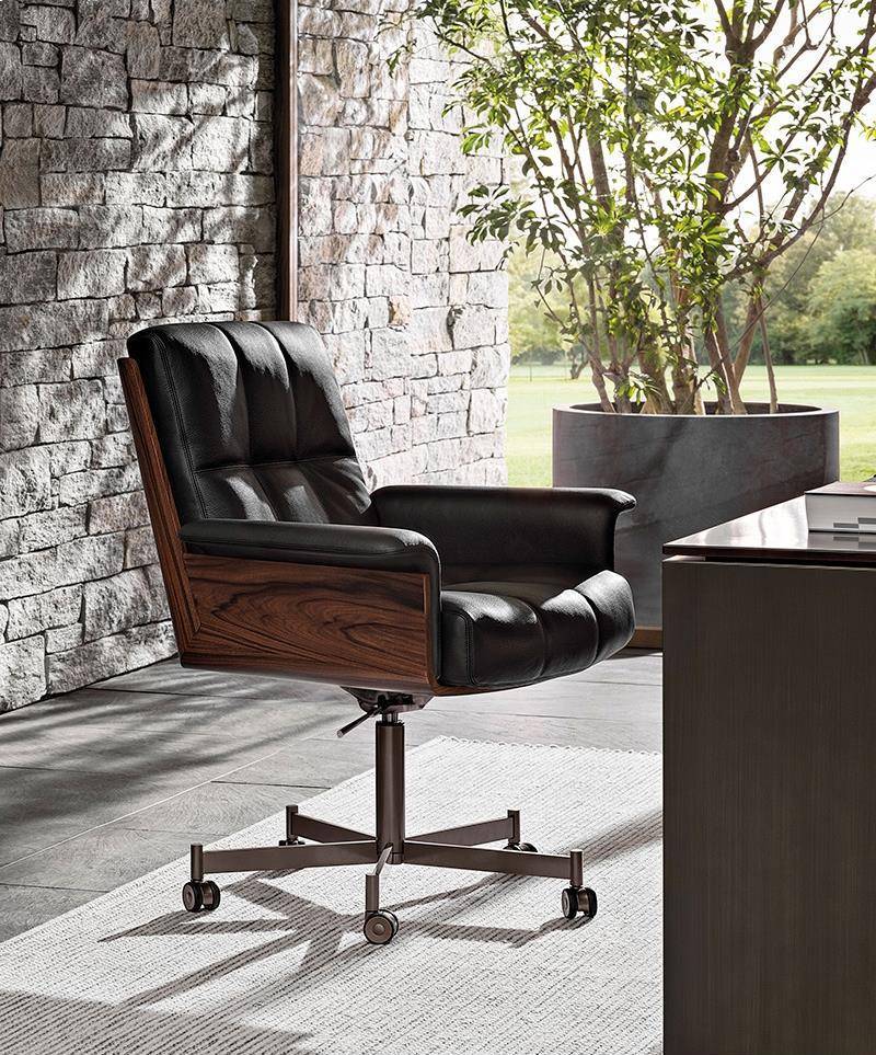 Кресло Daiki Studio — модель, разработанная с учётом потребностей современных рабочих пространств и офисов. Дизайн изделия сочетает в себе утончённость и геометрию японского дизайна с эстетикой mid-century modern, отражённой в простоте и чёткости его линий и сбалансированных пропорциях. Изготовленный с использованием сложных технологий обработки дерева, изогнутый корпус состоит из двух элементов, соединенных под углом 45°, что гарантирует максимальный комфорт. Корпус из палисандра Santos, окрашенного в темно-коричневый цвет, или черного ясеня, покрытого лаком с открытыми порами, обеспечивает плотную посадку для амортизации. В коллекцию входят пять версий модели: высокое кресло на колёсиках с подъёмным механизмом, низкое кресло на колёсиках с подъёмным механизмом, статичное кресло с поворотным механизмом, классическое высокое кресло и классическое низкое кресло.