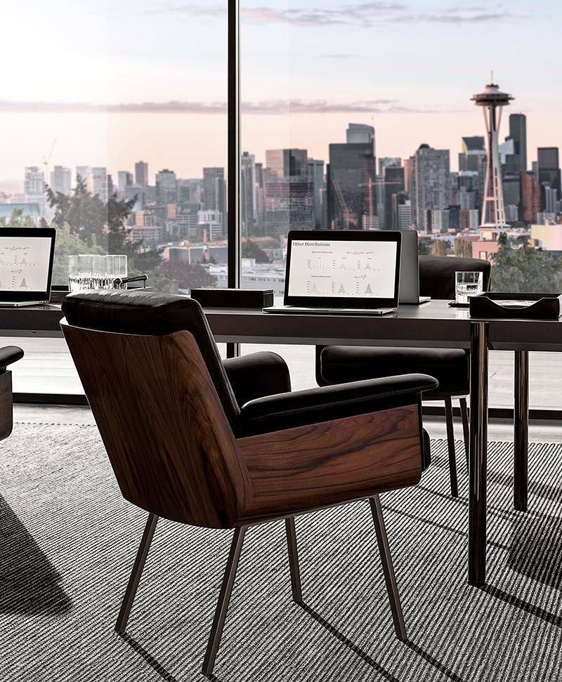 Все кресла могут быть полностью обтянуты кожей или тканью, а также иметь подлокотники из кожи Aspen цвета Carbone и обивку из ткани. Покрытие из кожи или ткани всегда имеет строчку, за исключением версии Executive, которая также имеет слегка стеганый эффект.