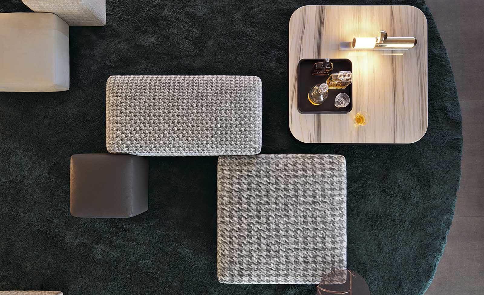 В различных комбинациях обивки используется широкий выбор тканей и кожи коллекции Minotti.