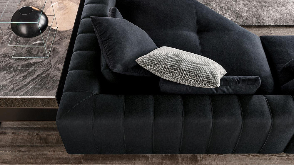 Приготовьтесь устроиться на диване, который дарит приятное ощущение манящего тепла и комфортной мягкости. Подушки сидений элементов Duvet Freeman имеют внутреннюю вставку из полиуретана, обернутую набивкой из пены с эффектом памяти и покрытую слоем мягкого пуха. Для общего эффекта чрезвычайной мягкости вся структура Freeman «Duvet» обернута термосвариваемым волокнистым покрытием. Подлокотники и спинки украшены сложной вышивкой. Детали в ткани соединены полосой из экокожи цвета бронзы с двойным прошитым узором, ритмично подчеркивающим объемность элементов.