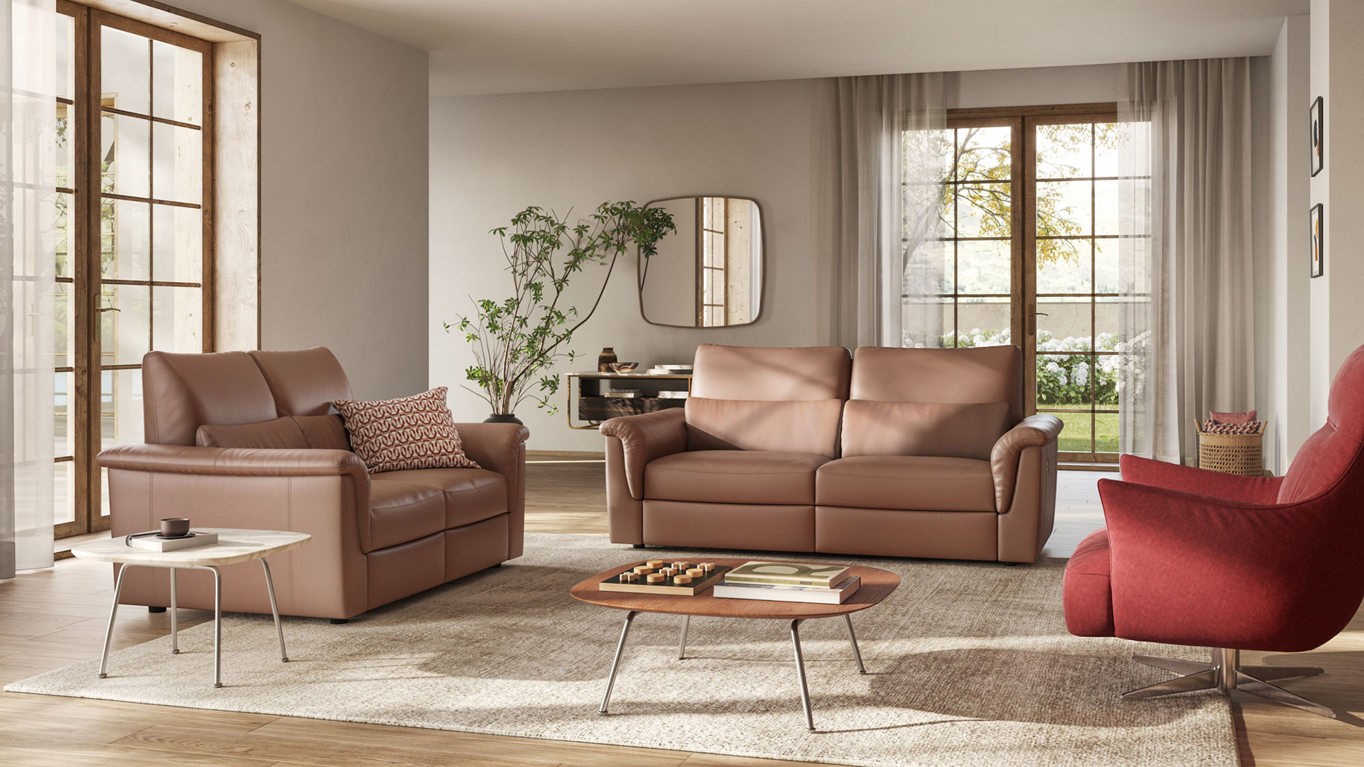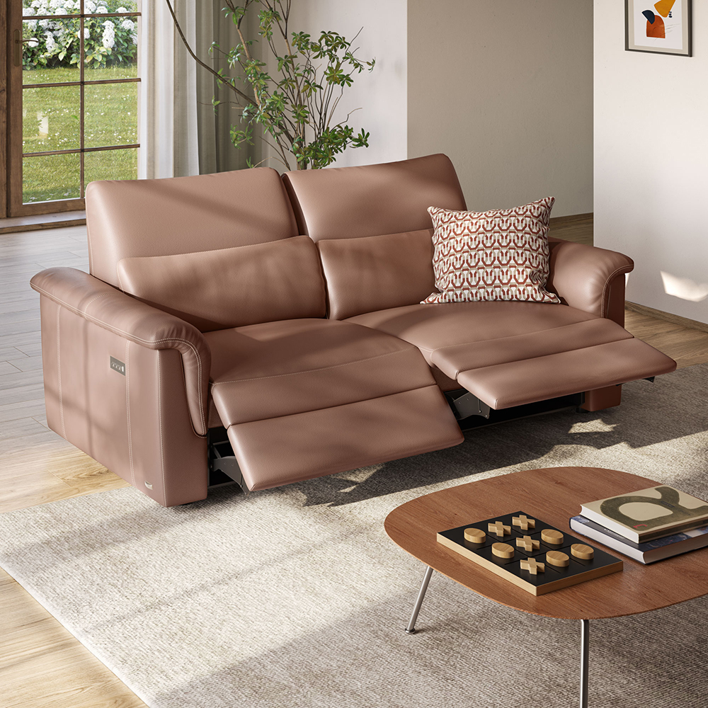 Amorevole отличается повседневным дизайном и уютными формами. Он с высокой спинкой и широкими подлокотниками, которые имеют квадратный дизайн и закругленные углы.