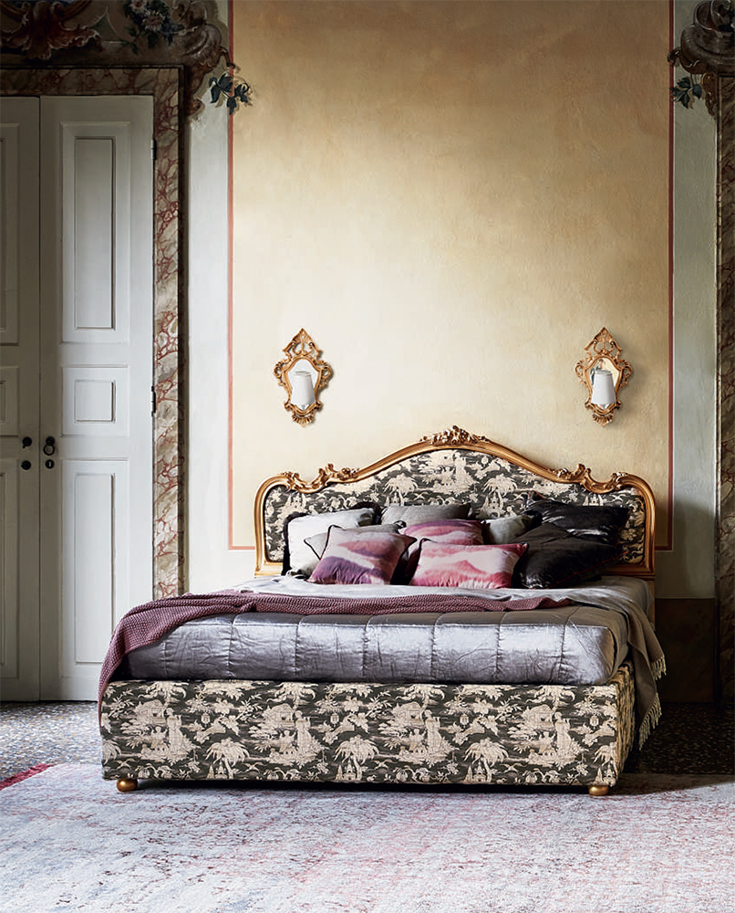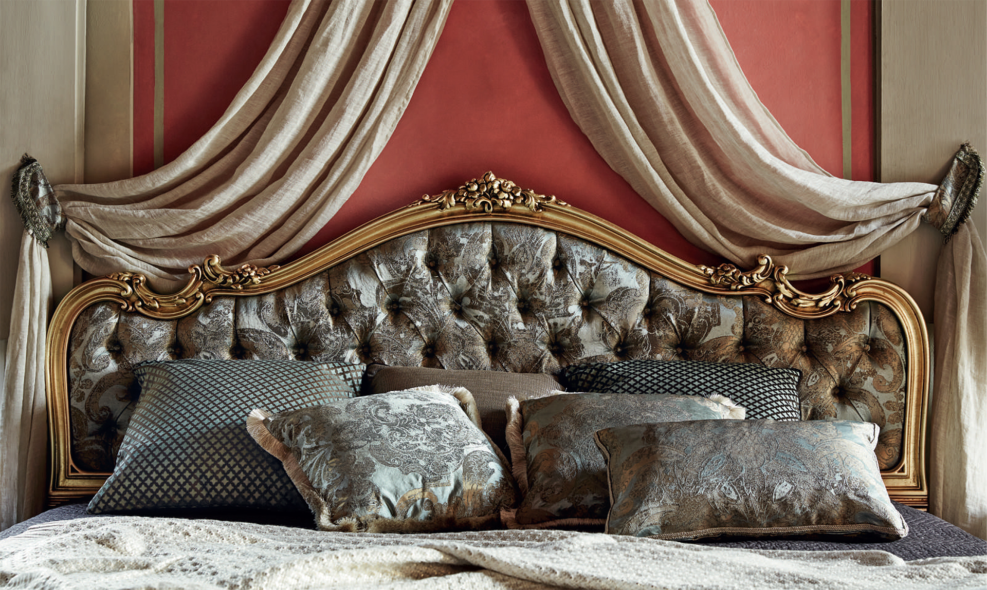 Двуспальная кровать с высоким мягким изголовьем и изножьем (возможен вариант кровати без изножья). Декор - пенополиуретан, наполнение - полиуретан. Возможны другие варианты отделки и обивки.