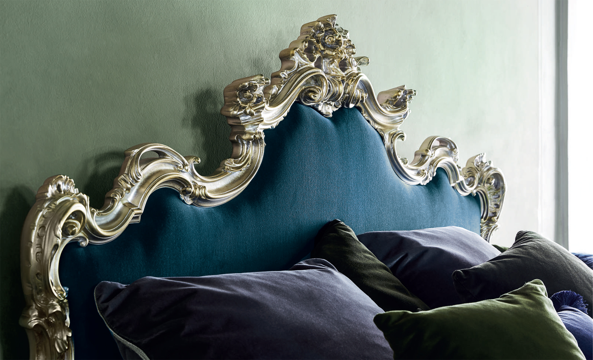 Двуспальная кровать с высоким изголовьем и изножьем (возможен вариант кровати с мягким изголовьем или без изножья). Декор - пенополиуретан, наполнение - полиуретан. Возможны другие варианты отделки.