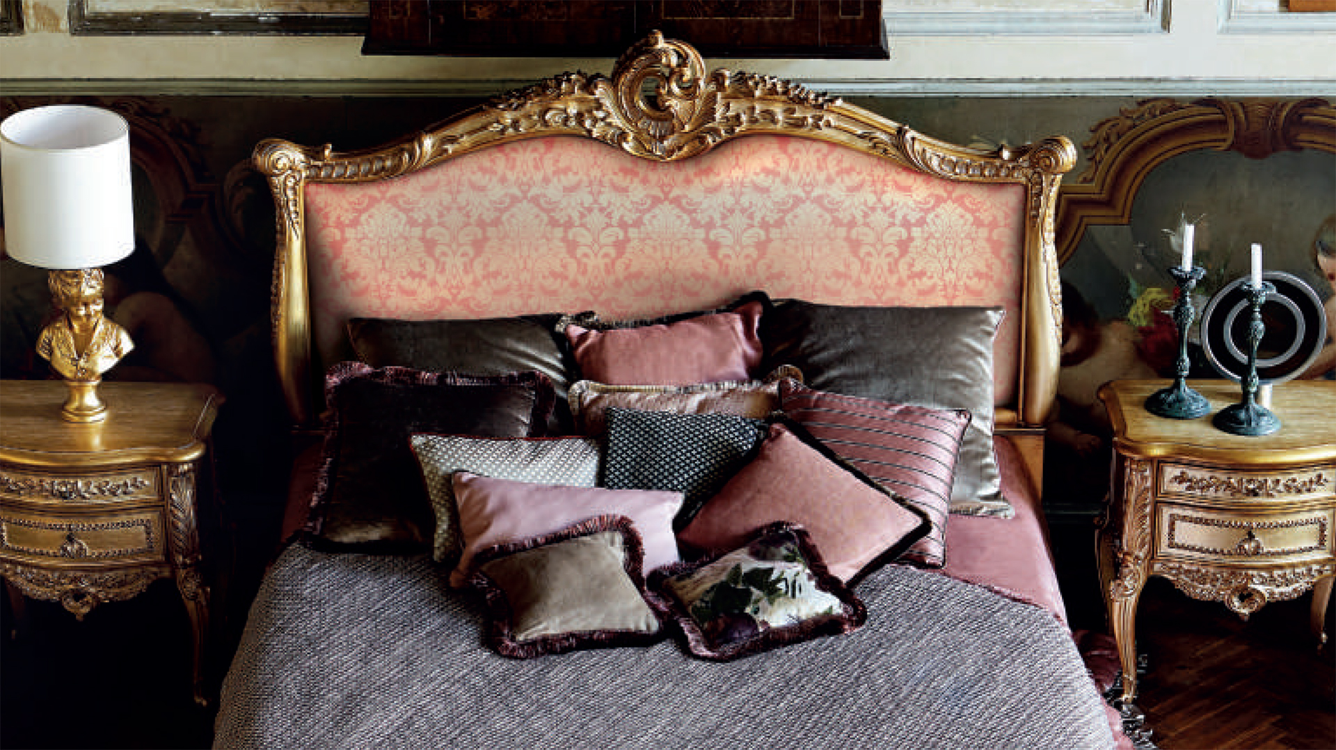 Тумбочка с двумя ящиками в классическом стиле. В отделке белое золото с резным узором.