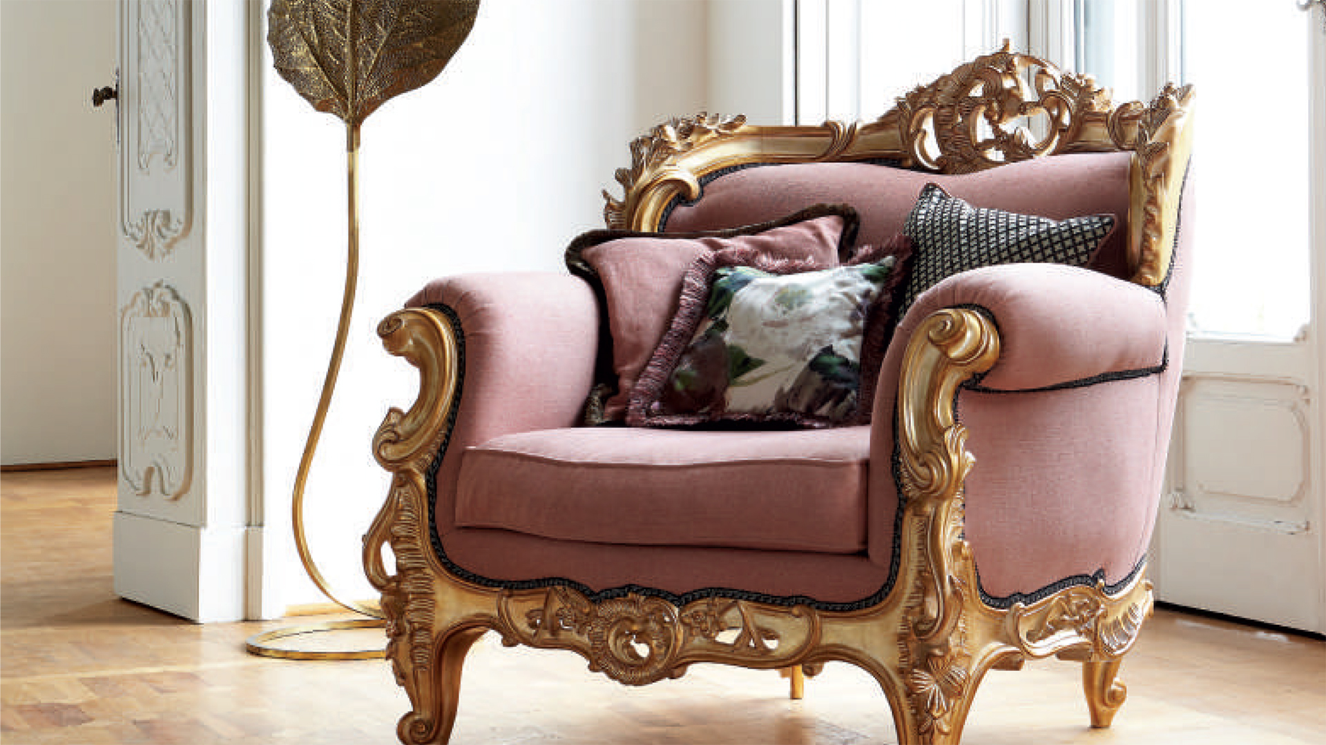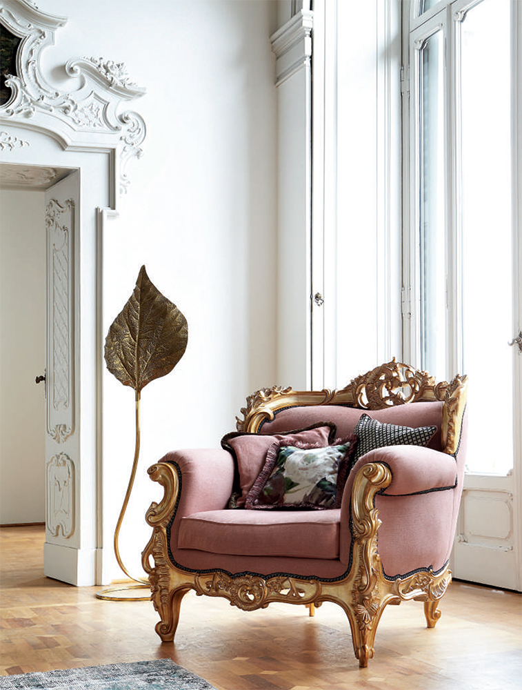 Кресло украшено декоративной резьбой. Возможны другие варианты отделки и обивки.