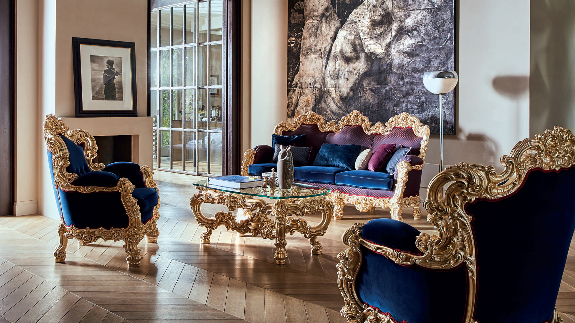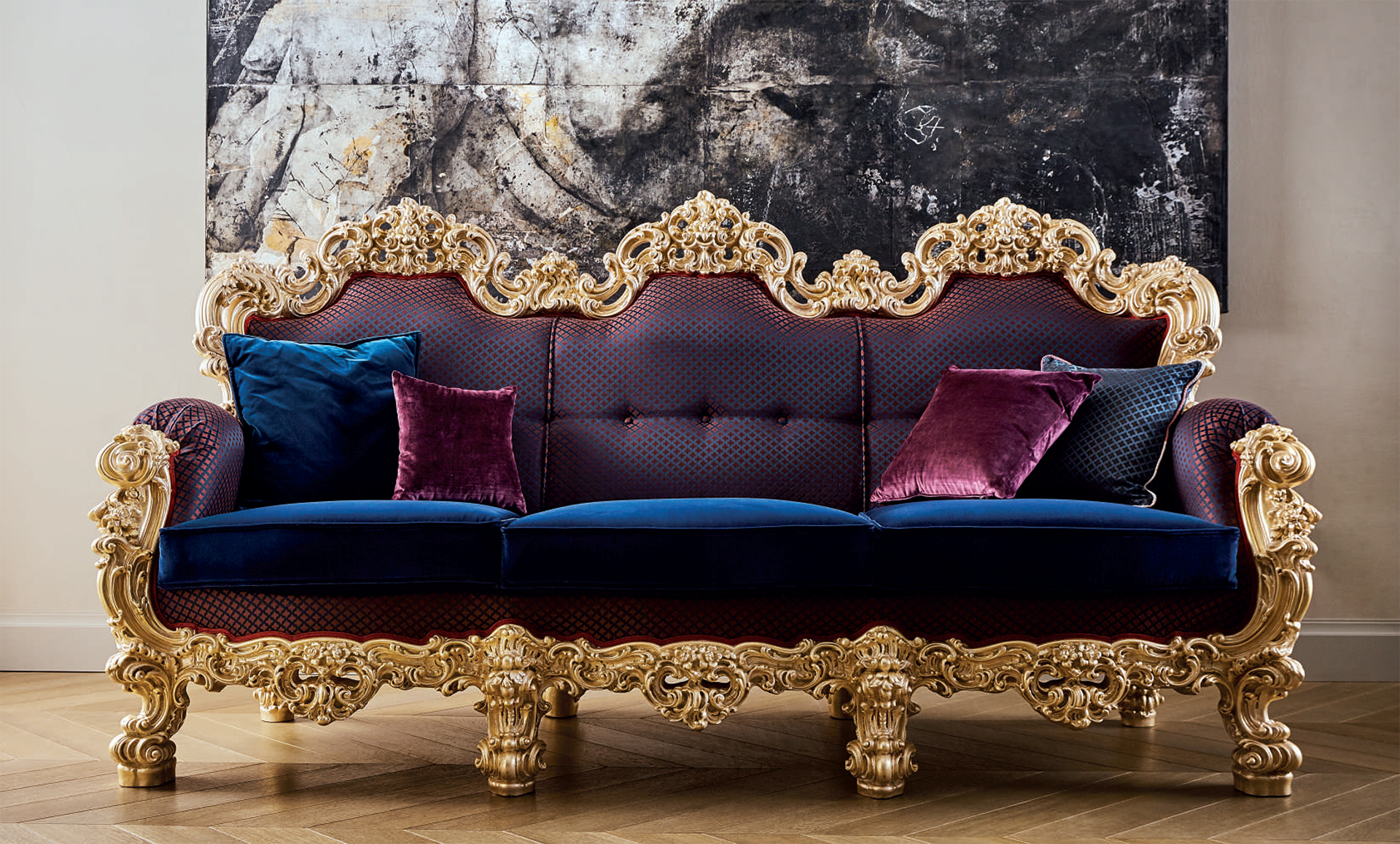 3-х местный диван, высокая спинка. Декор - пенополиуретан, наполнение - полиуретан. Возможны другие варианты отделки и обивки.