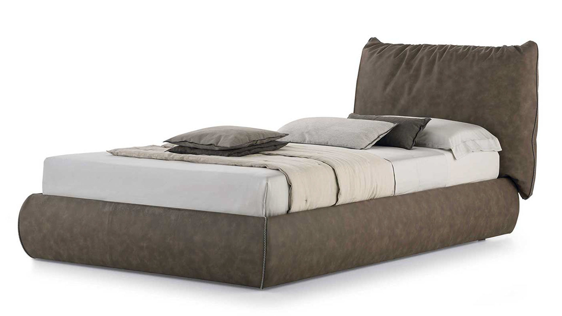 SOGNO от Tomasella — это полностью мягкая и выдвижная кровать, отличающаяся большими размерами и заклепочной строчкой изголовья и подушек каркаса кровати. Уютная и комфортная.
