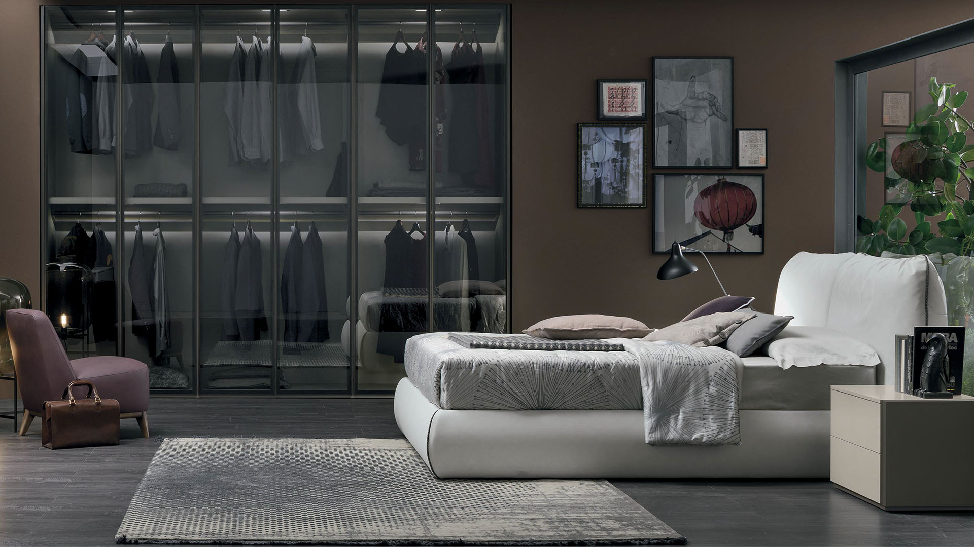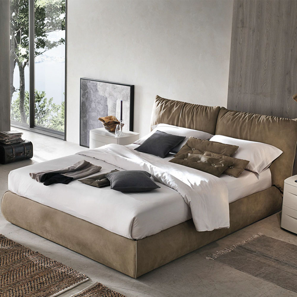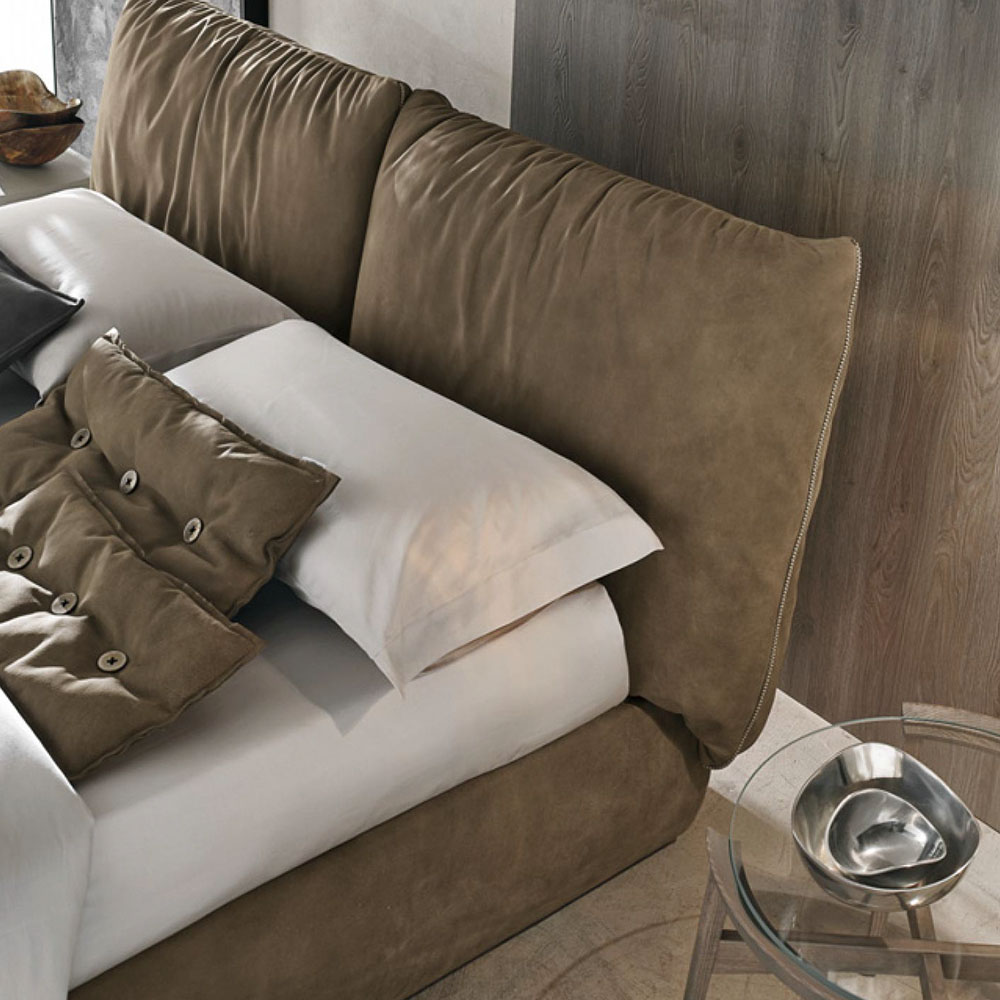 Кровать, полностью покрытая мягкой обивкой на изголовье и по периметру основания. Элемент портновской выработки – швы с отделкой, они украшают края и стильно подчеркивает мягкую объемность. Эта модель украсит спальню мечты.