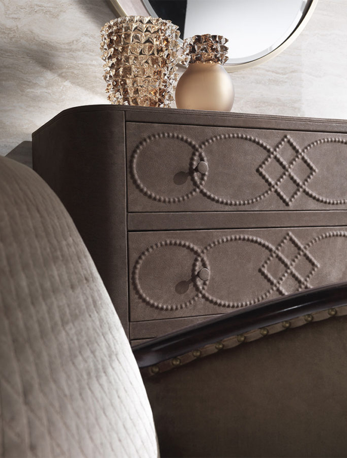 Элегантность, функциональность и дизайн: стильная индивидуальность ночного столика Infinity уместна в любой обстановке благодаря декоративным элементам на выдвижных ящиках, которые добавляют нотку классического шарма простому дизайну и строгим пропорциям стола.