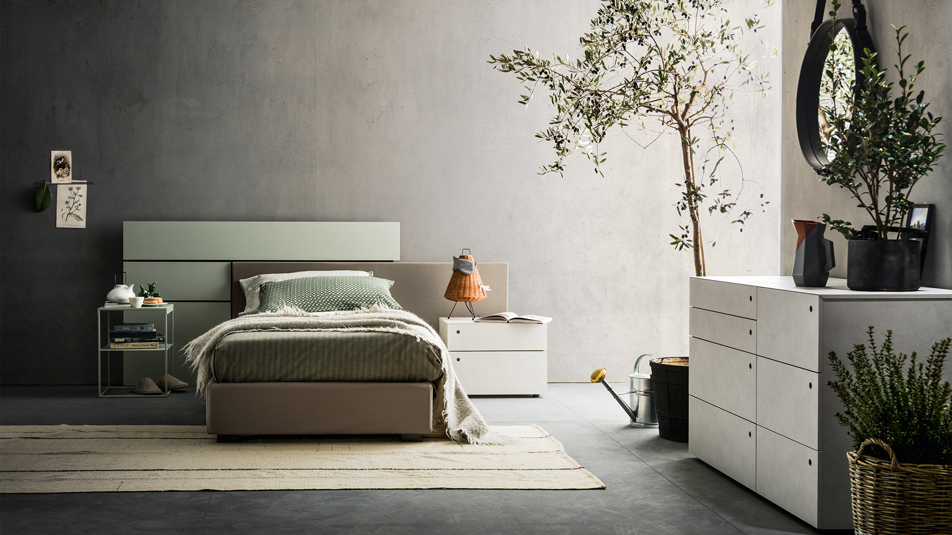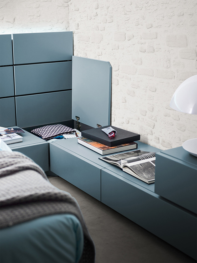 В абсолютной гармонии, деревянные или отделочные панели создают асимметричную игру, придающую визуальную значимость головной спинке.