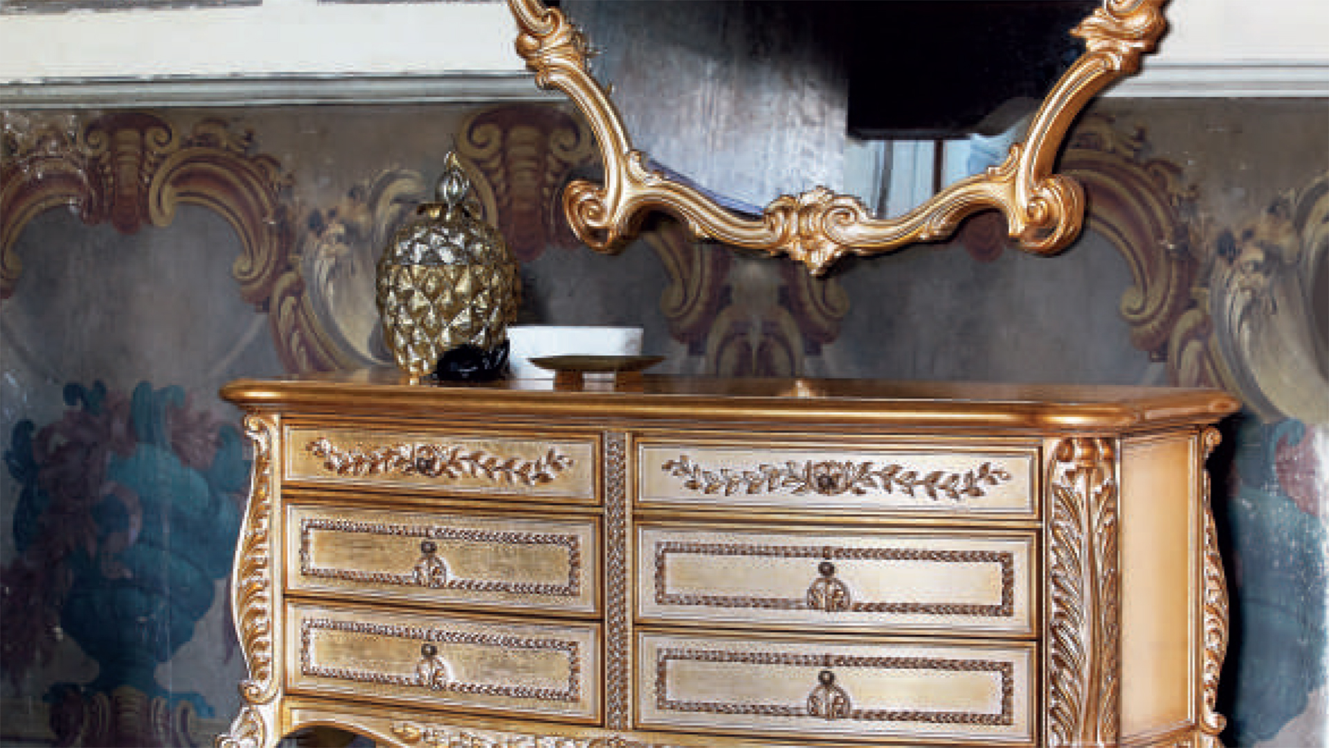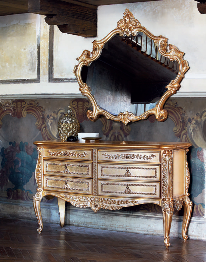Комод с шестью выдвижными ящиками, деревянной поверхностью и стеклом. Возможны другие варианты отделки.