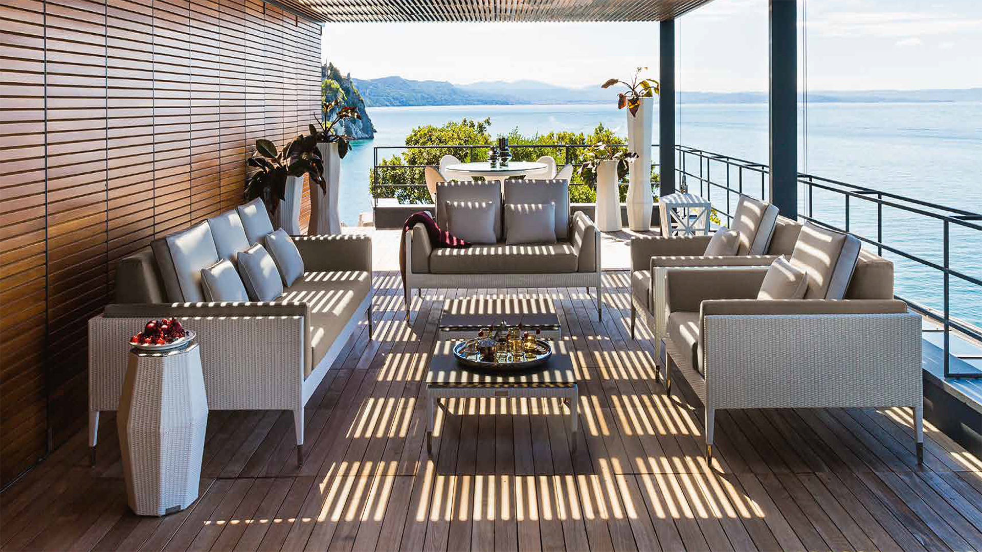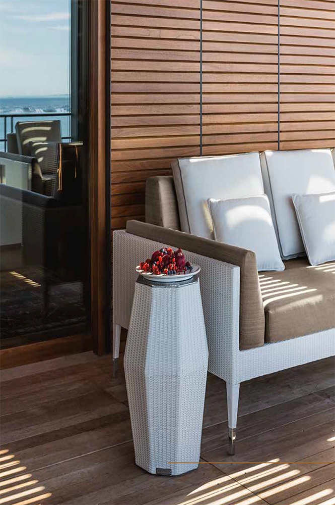 Его окружающая среда — это открытый воздух: материалы, из которых он состоит, предназначены для того, чтобы противостоять плохим погодным условиям, сезон за сезоном. Съемные обивки легко чистятся, и этот функциональный аспект сочетается с шикарной элегантностью Maratea.