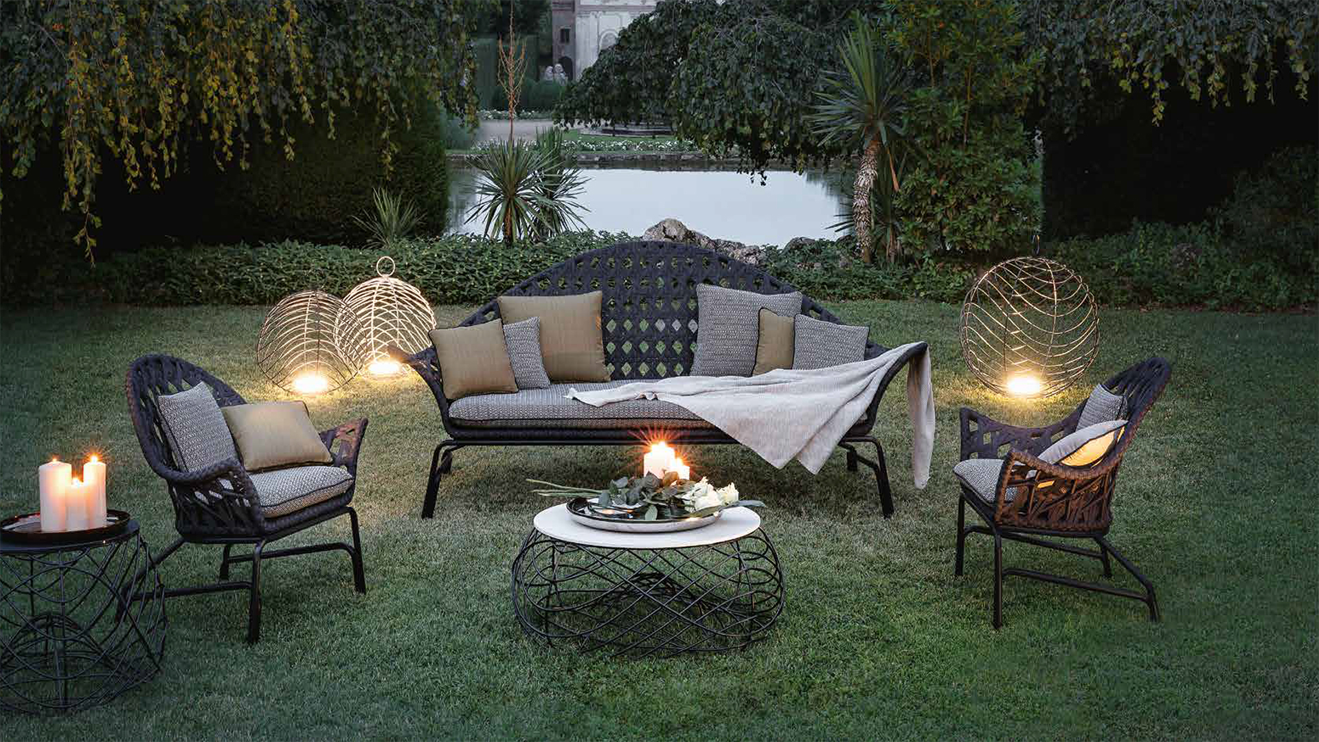 Алюминиевый диван с матовым покрытием, чехол из тканого ремня из полиэстера, съемное сиденье.