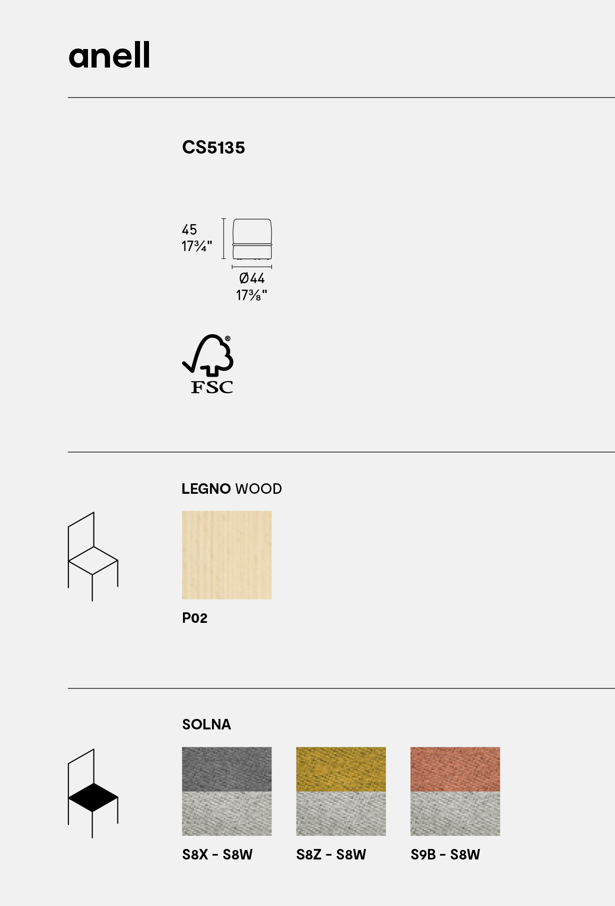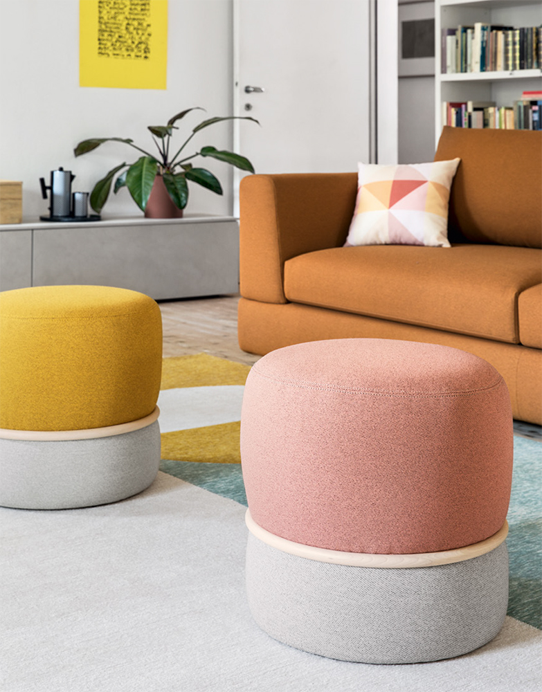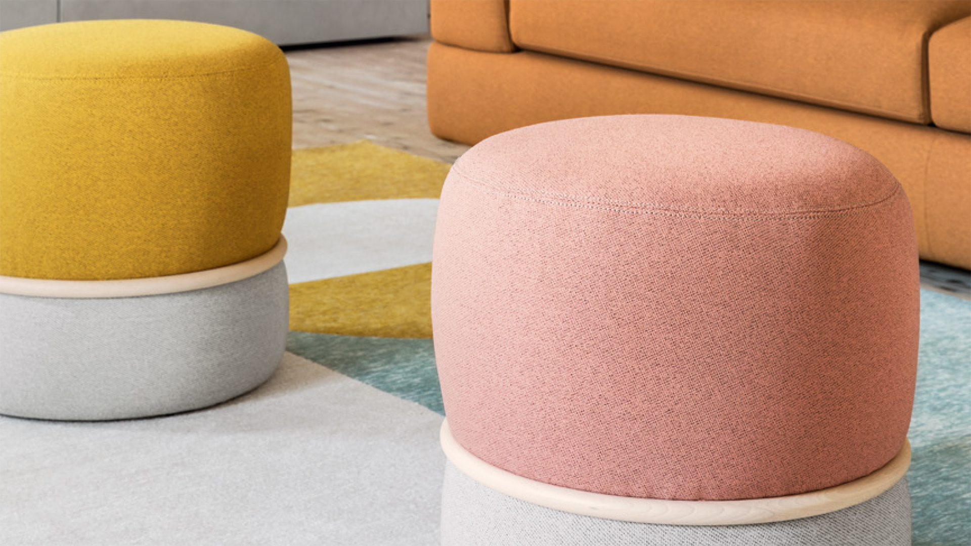 Пуф Anell был разработан и создан, чтобы использовать его как табурет, подставку для ног или в декоративных целях. Пуф имеет жесткую основу и четыре скрытые ножки, наполнение из полиуретана.  Тонкое деревянное кольцо подчеркивает двухцветные комбинации тканевой обивки. Anell отлично дополнит интерьер гостиной, прихожей или спальни.