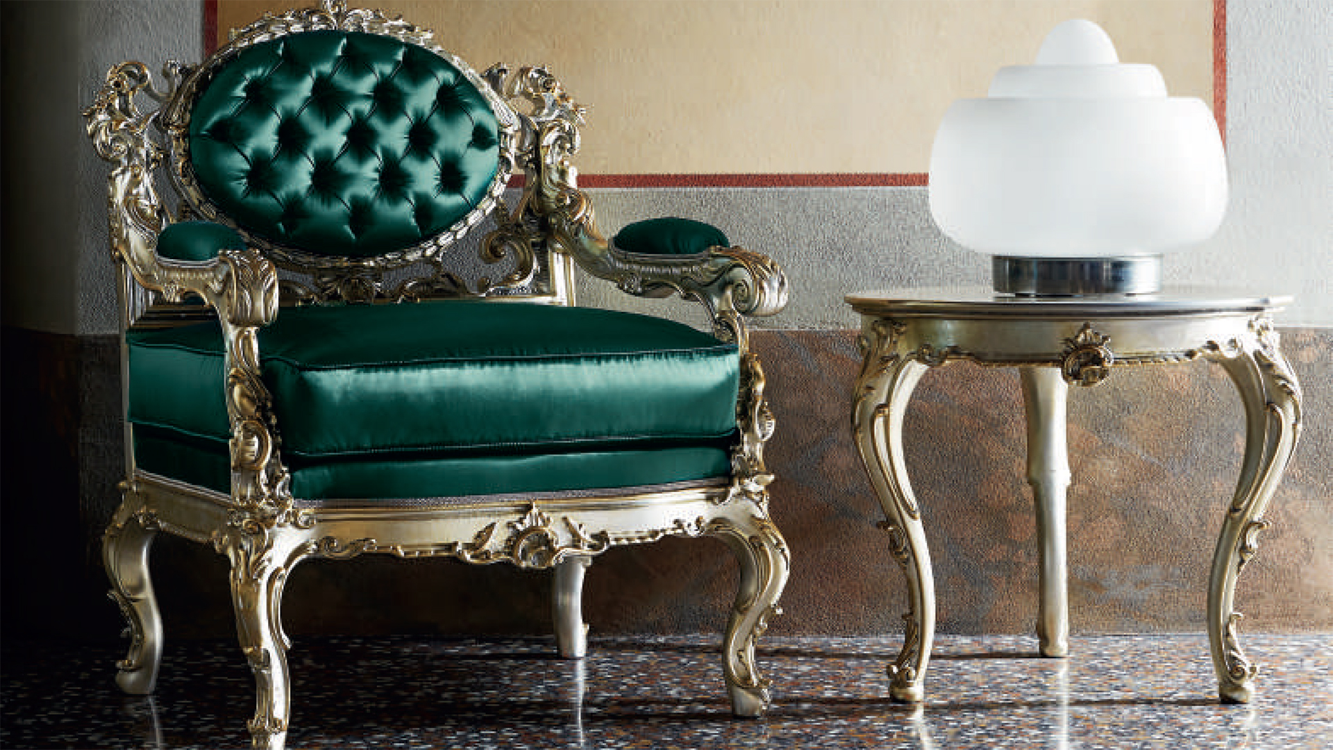 Подлокотники кресла с мягкими накладками. Декор - пенополиуретан, наполнение - полиуретан. Возможны другие варианты отделки и обивки.