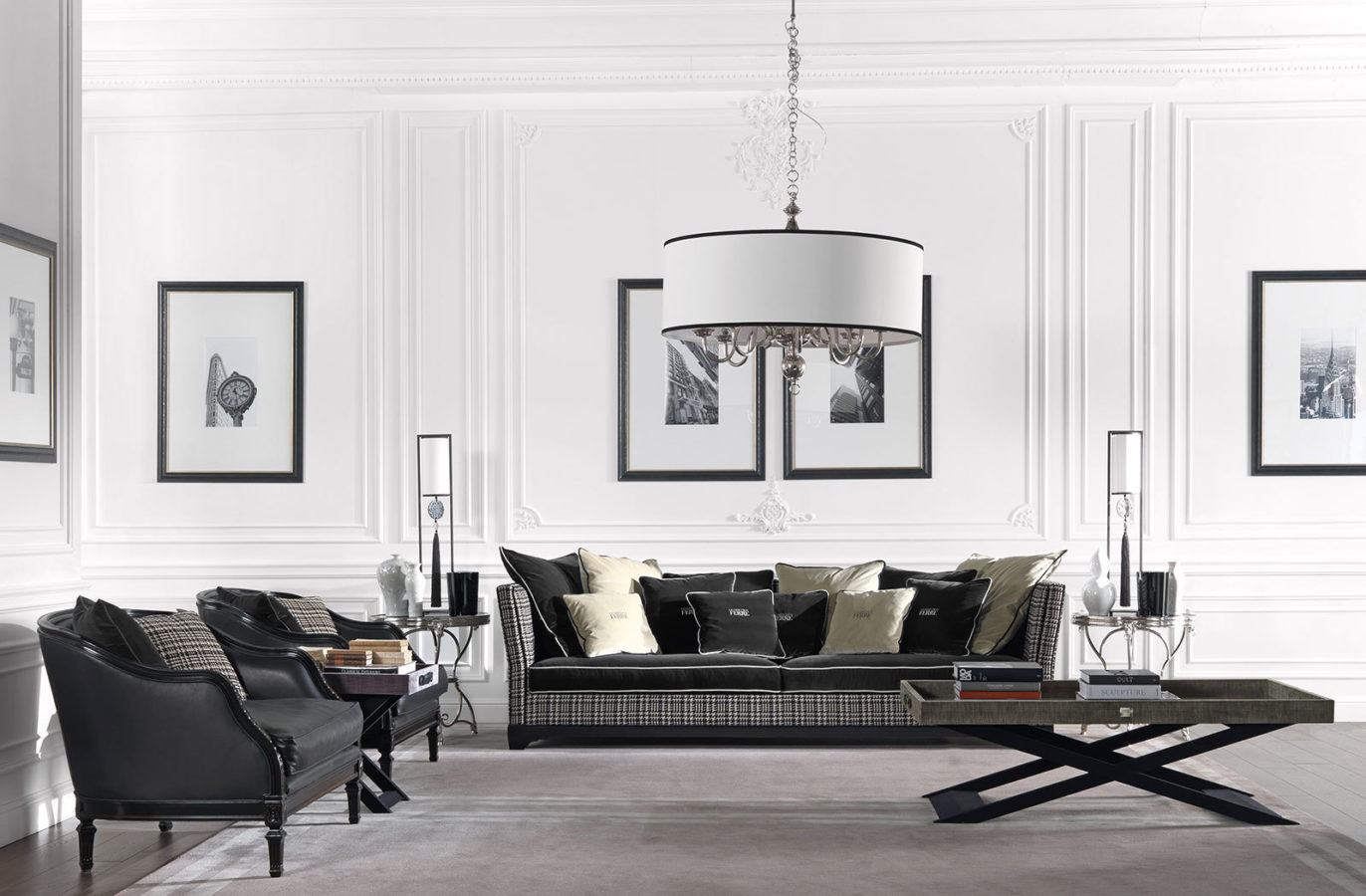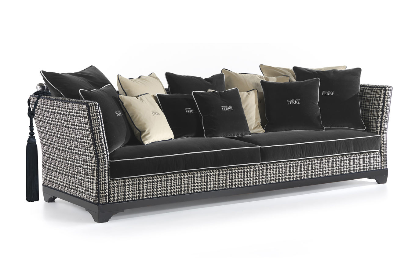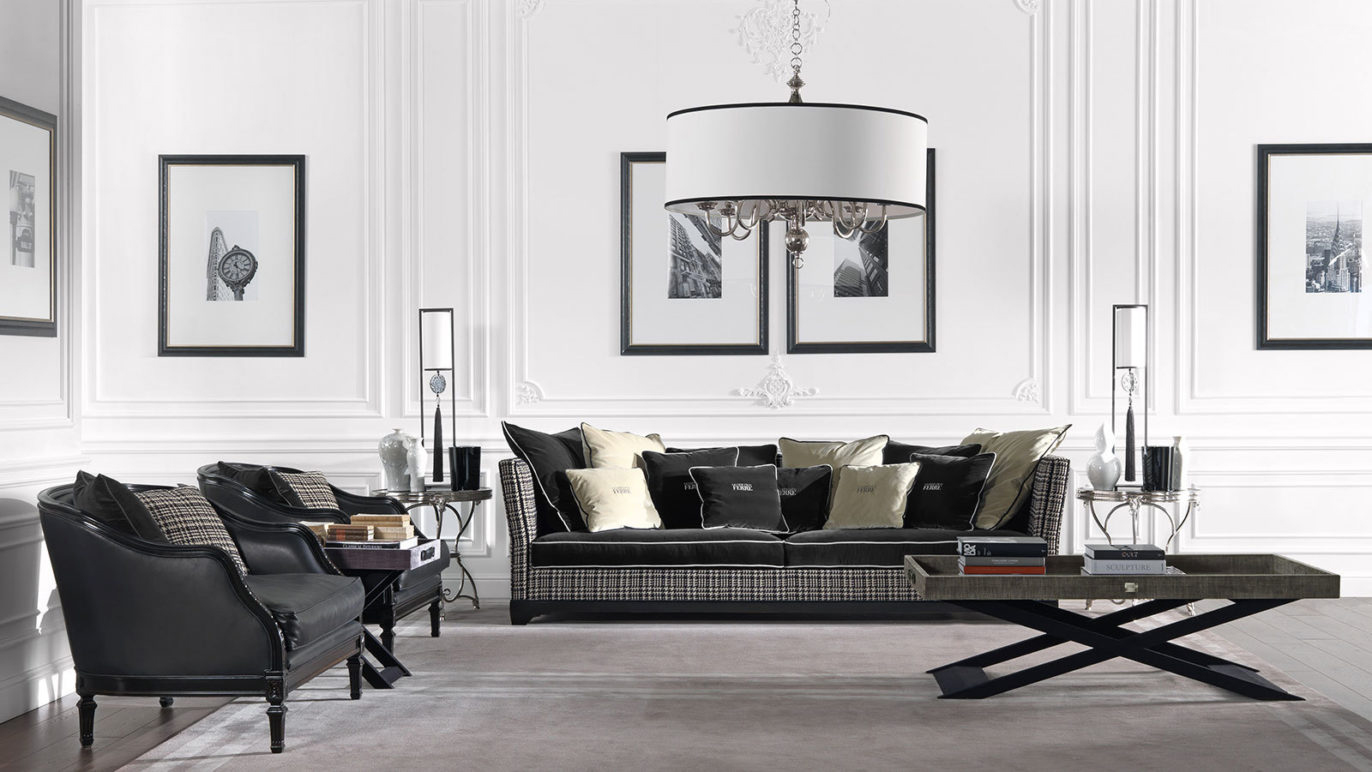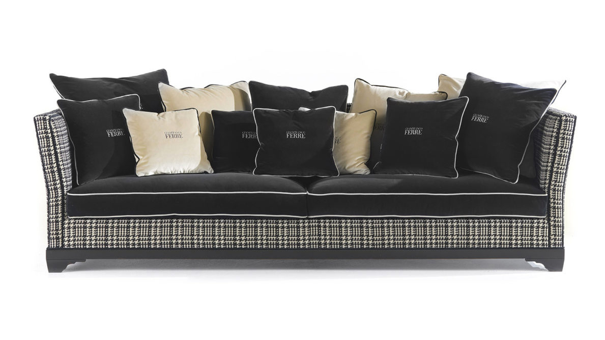 Диван Chelsea – эклектичная реинтпретация дивана «Caccia», исторической модели, характерной для интерьеров сельских домиков в Англии. Типичный британский стиль, узнаваемый в черной бархатной обивке и жаккардовых тканях с рисунком пье-де-пуль, встречается с неизменно привлекательным классическим стилем строгих линий и выверенных пропорций.