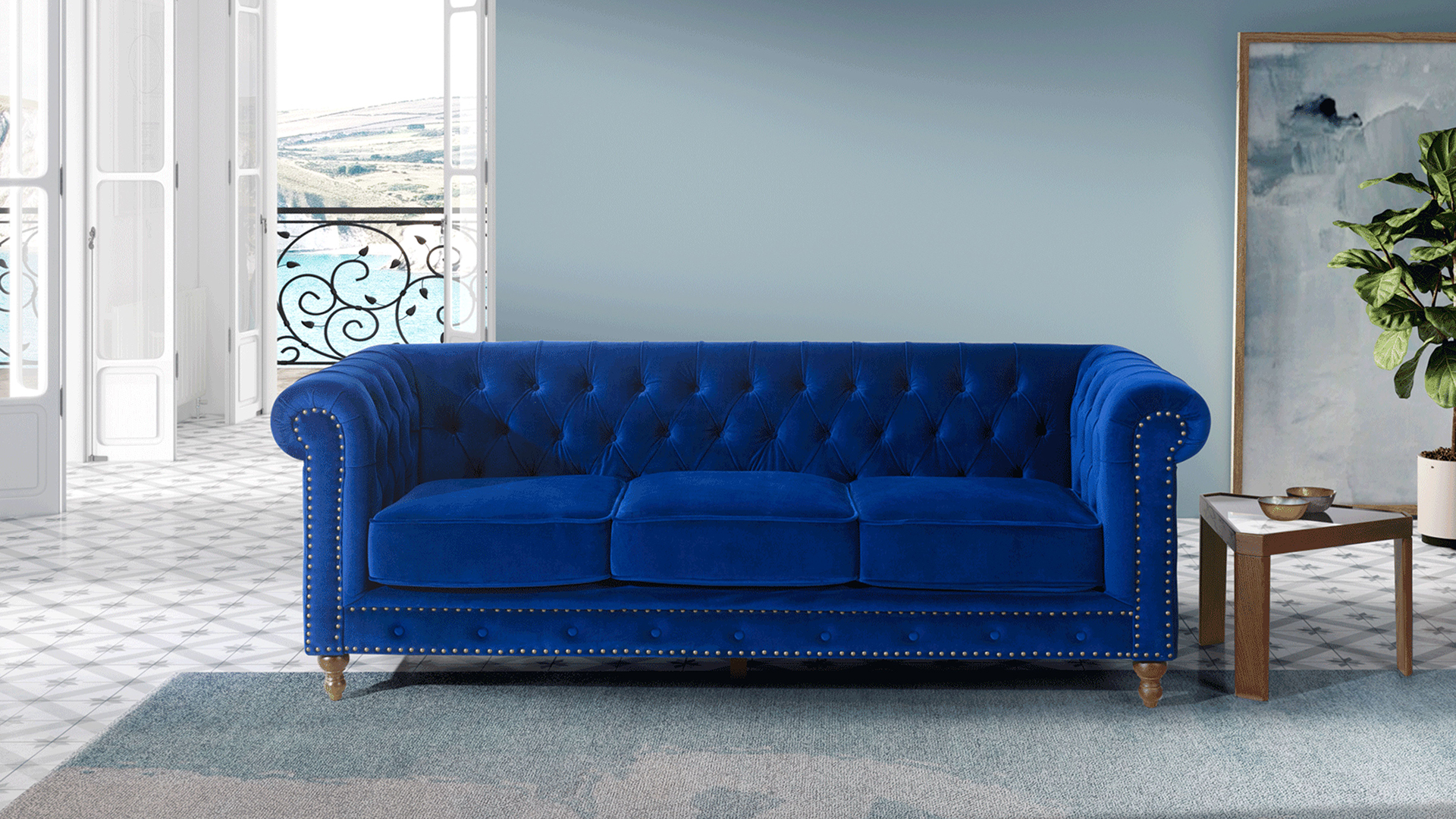 Диван трехместный Chesterfield темно-синий, Американская классика в безупречном исполнении.