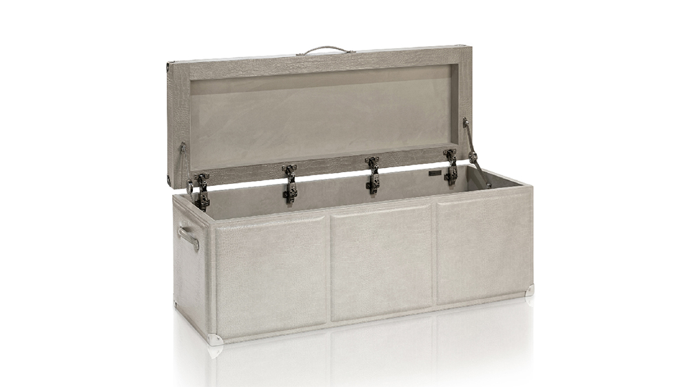Банкетка Adler напоминает винтажный дорожный сундук. Мягкое сиденье представляет собой откидную крышку, открывающую внутреннее содержимое банкетки. Изделие можно использовать как по её прямому назначению, так и в качестве дополнения к системе хранения в спальне.